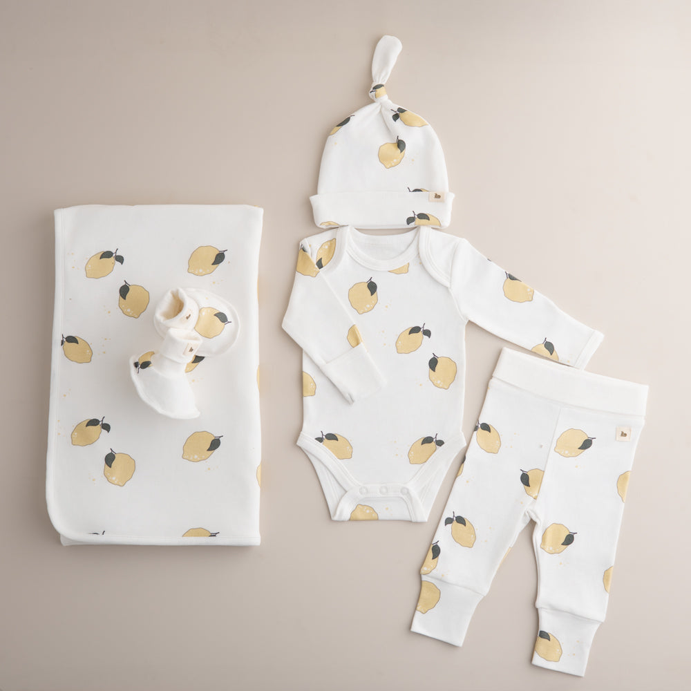 סט יוקרתי לתינוק- חמישה חלקים פרינט לימונים