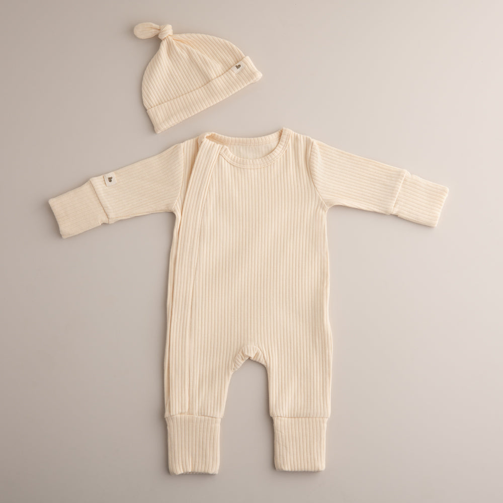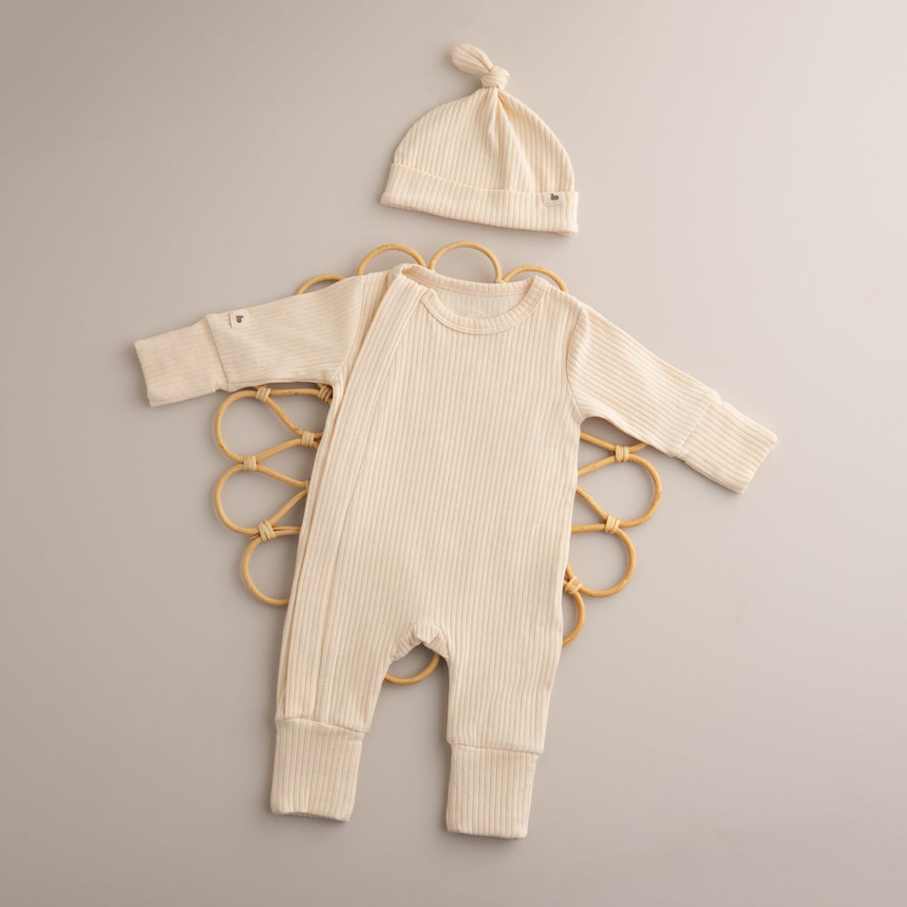 סט שני חלקים הכולל: כובע זרבובית , אוברול עם רוכסן מוסתר וסגירות חכמות למעטפת הידיים והרגליים ושומר על התינוק שלא ישרוט את עצמו , .