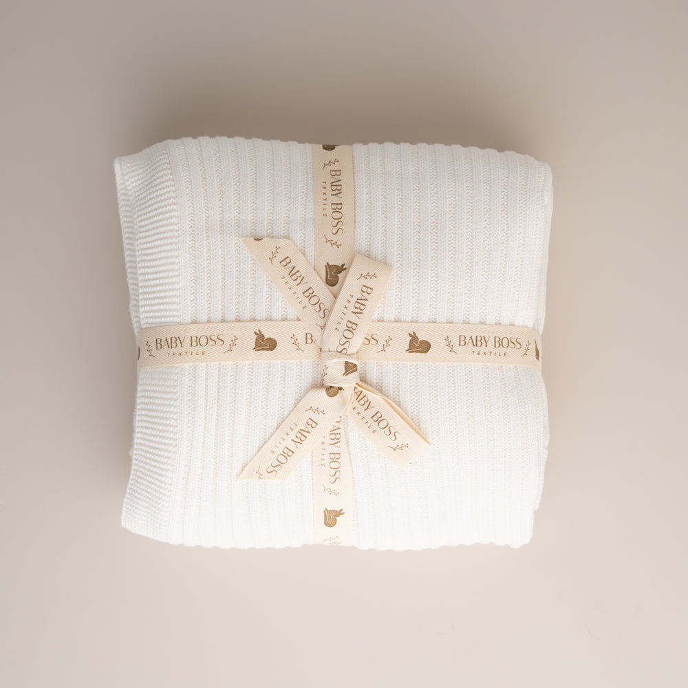 שמיכה לתינוק סרוגה דו צדדית שרפא - צבע לבן