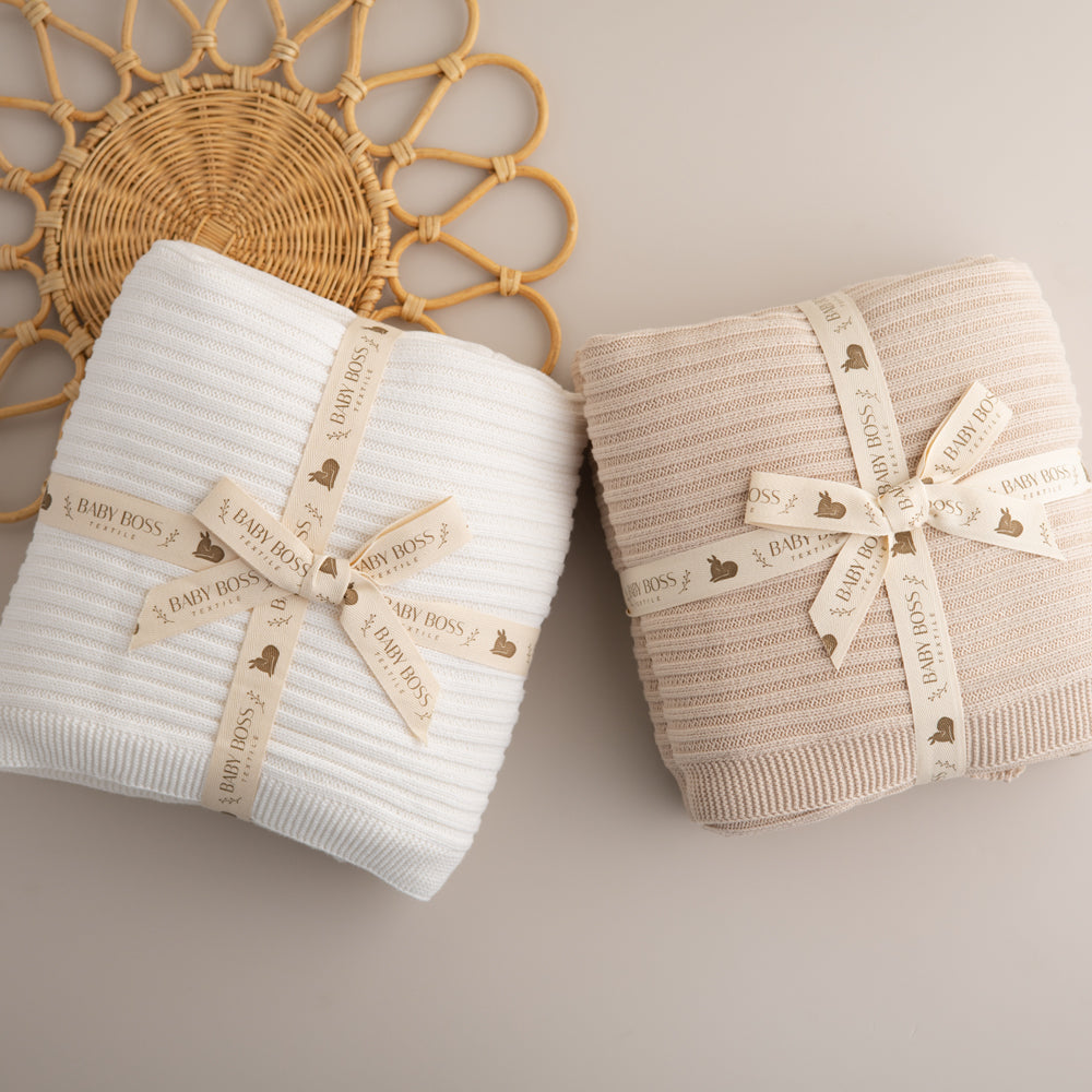 שמיכה לתינוק סרוגה דו צדדית שרפא - צבע אבן