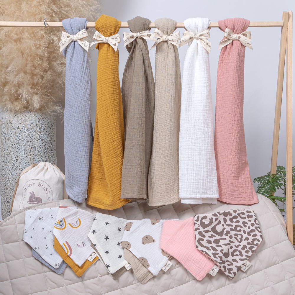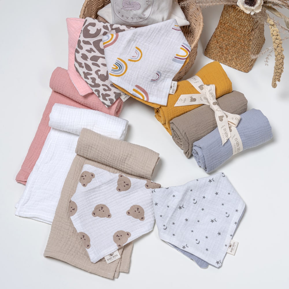 מארז חיתול טטרה וסינר בנדנה לתינוק - אפור