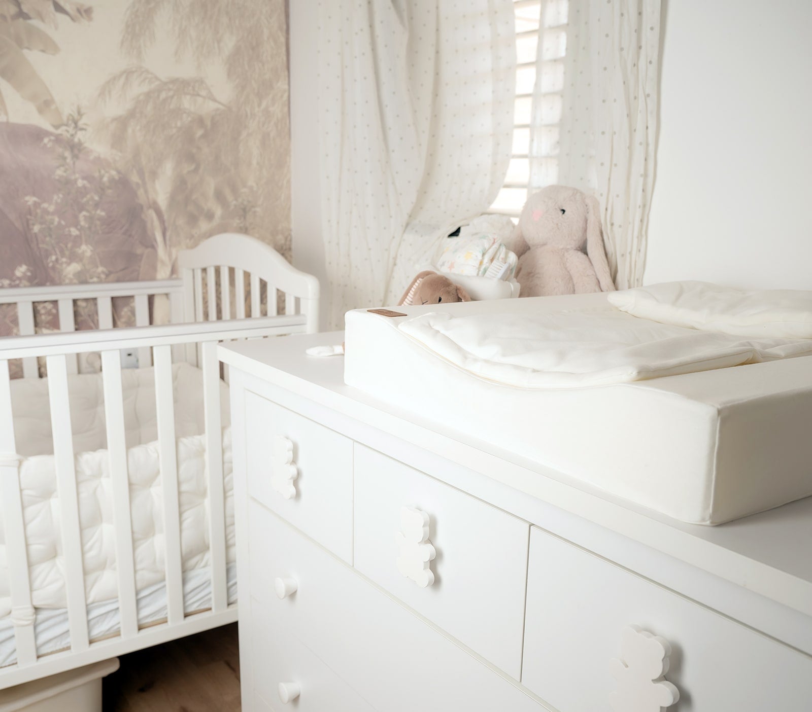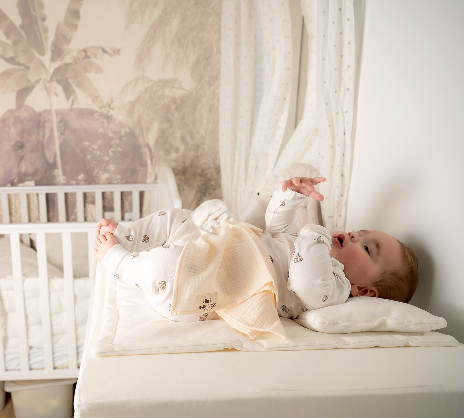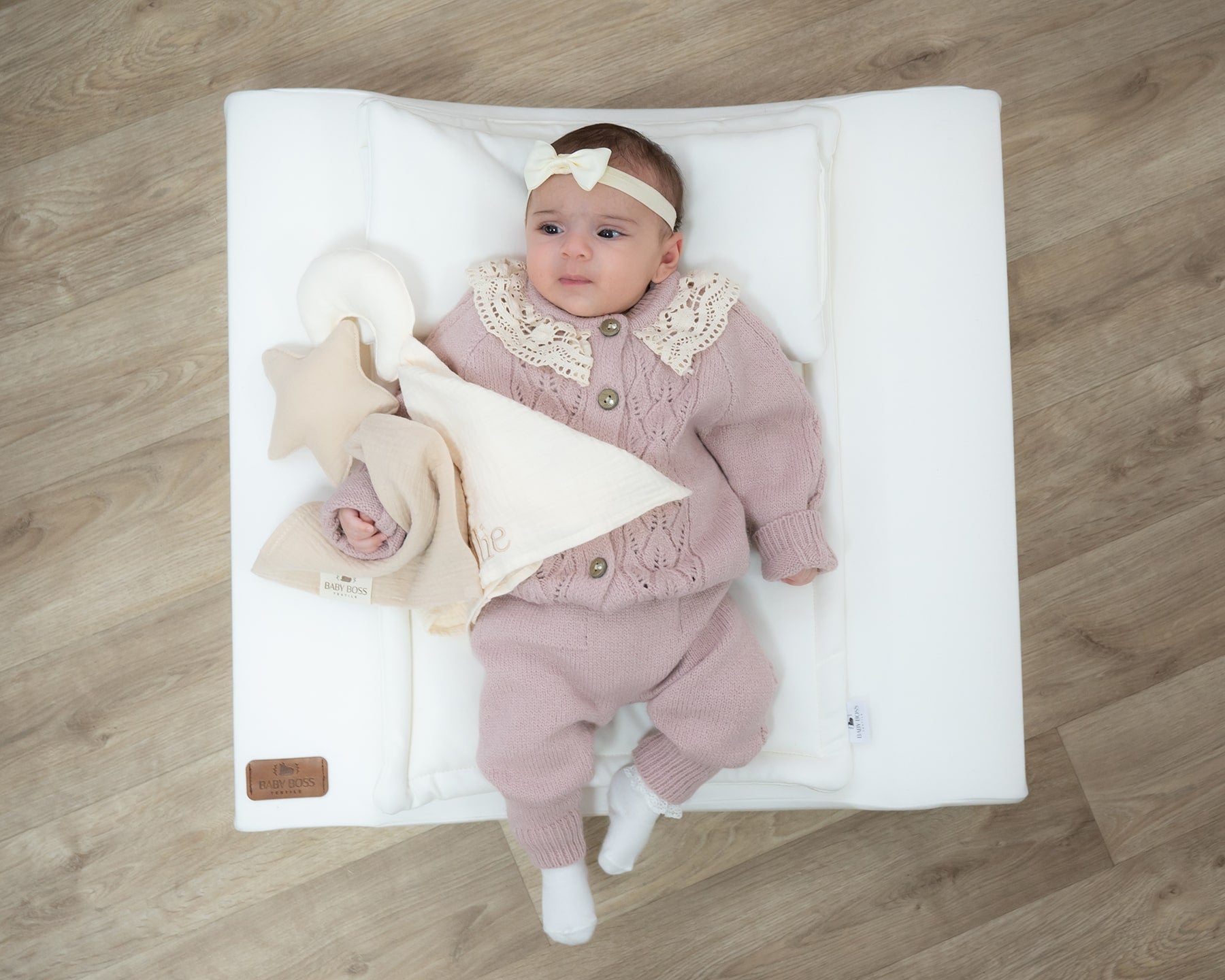 משטח החתלה מעוצב לתינוק - בד Modal לבן
