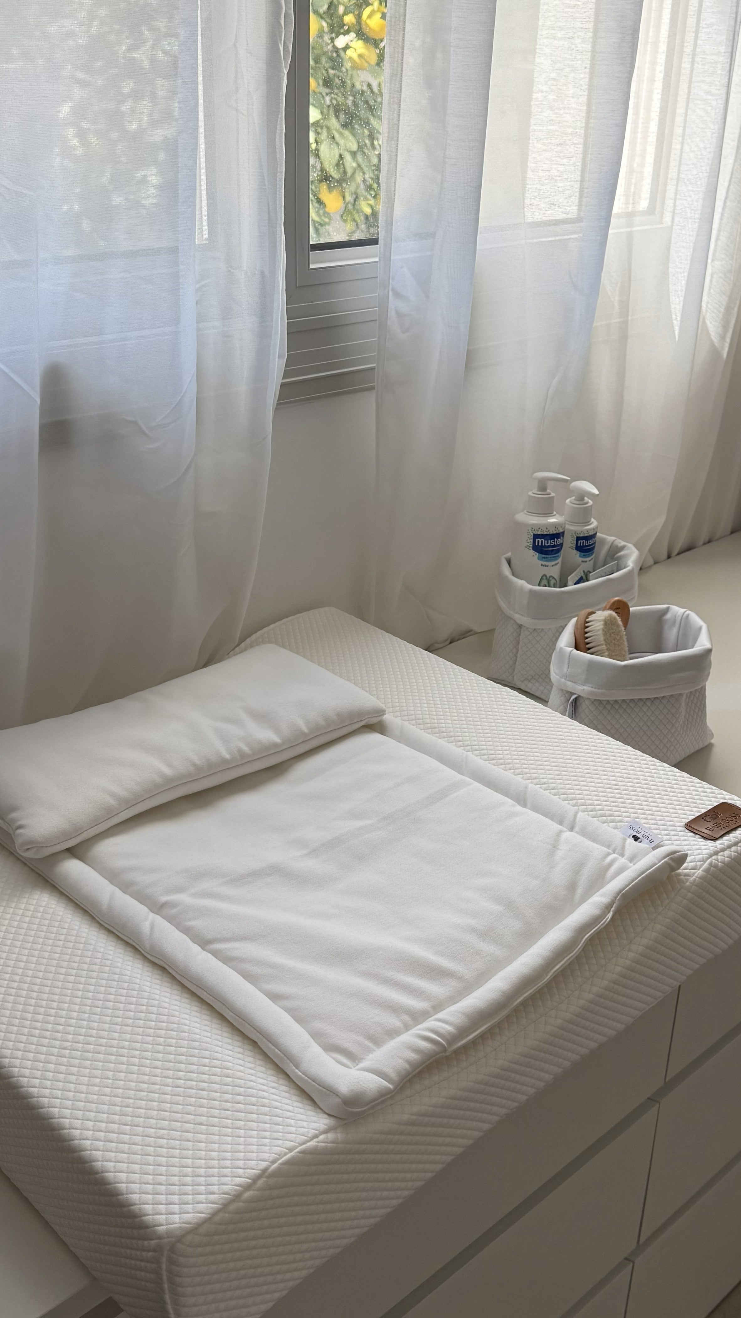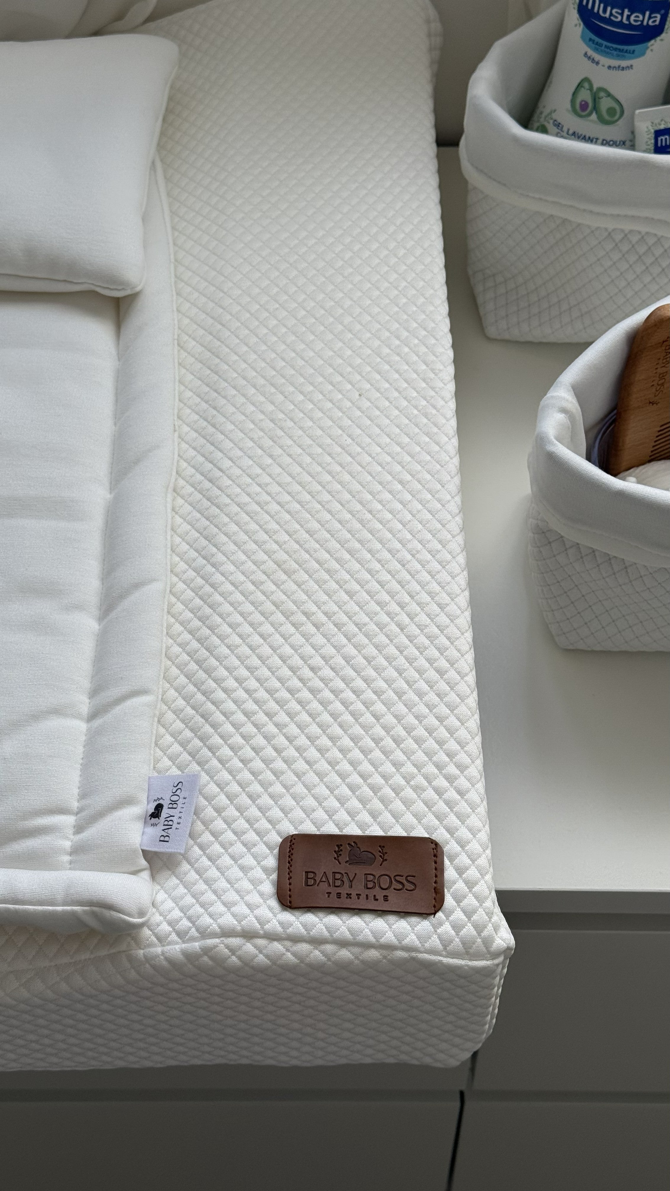 משטח החתלה לתינוק מעוצב - בד קווילט יוקרתי בצבע לבן