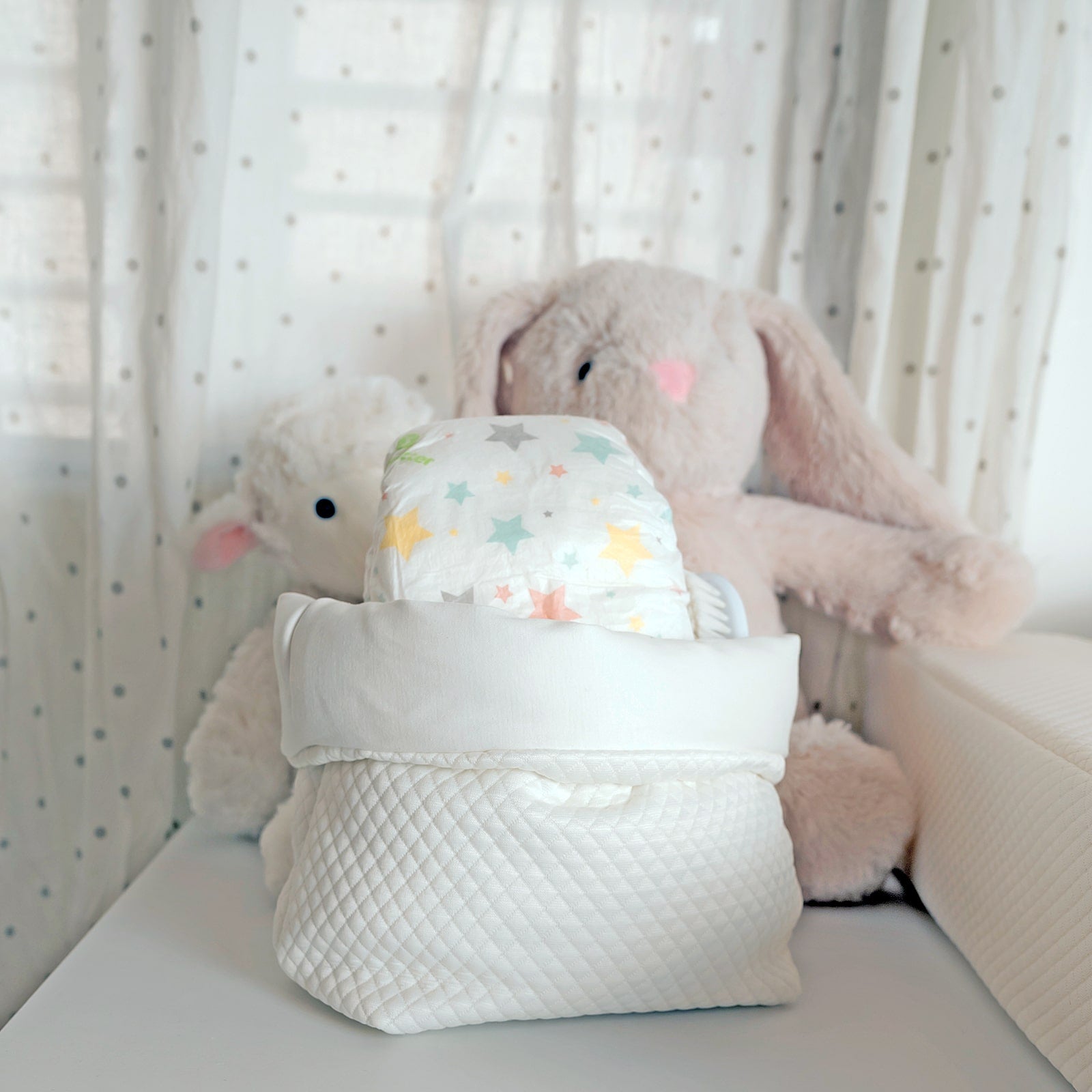 סלסלה תואמת למשטח ההחתלה - בד קווילט יוקרתי צבע לבן
