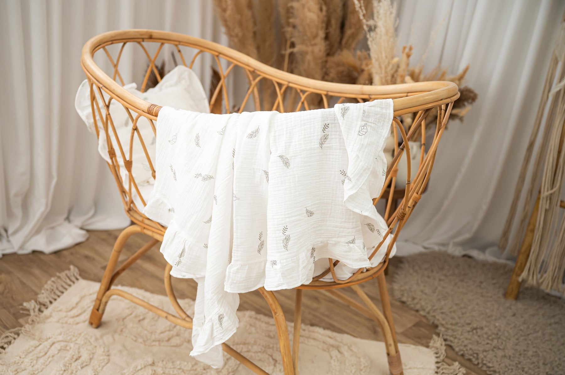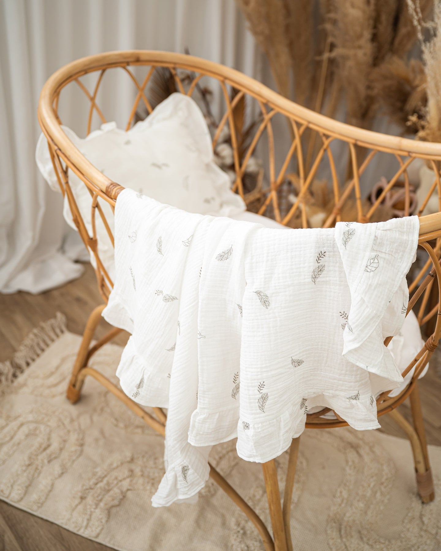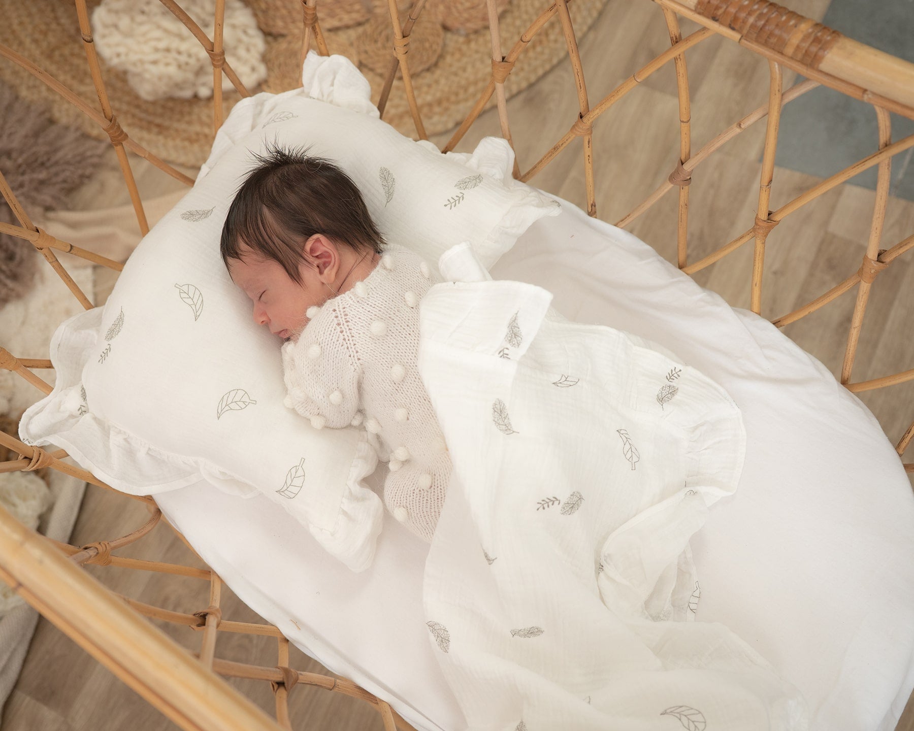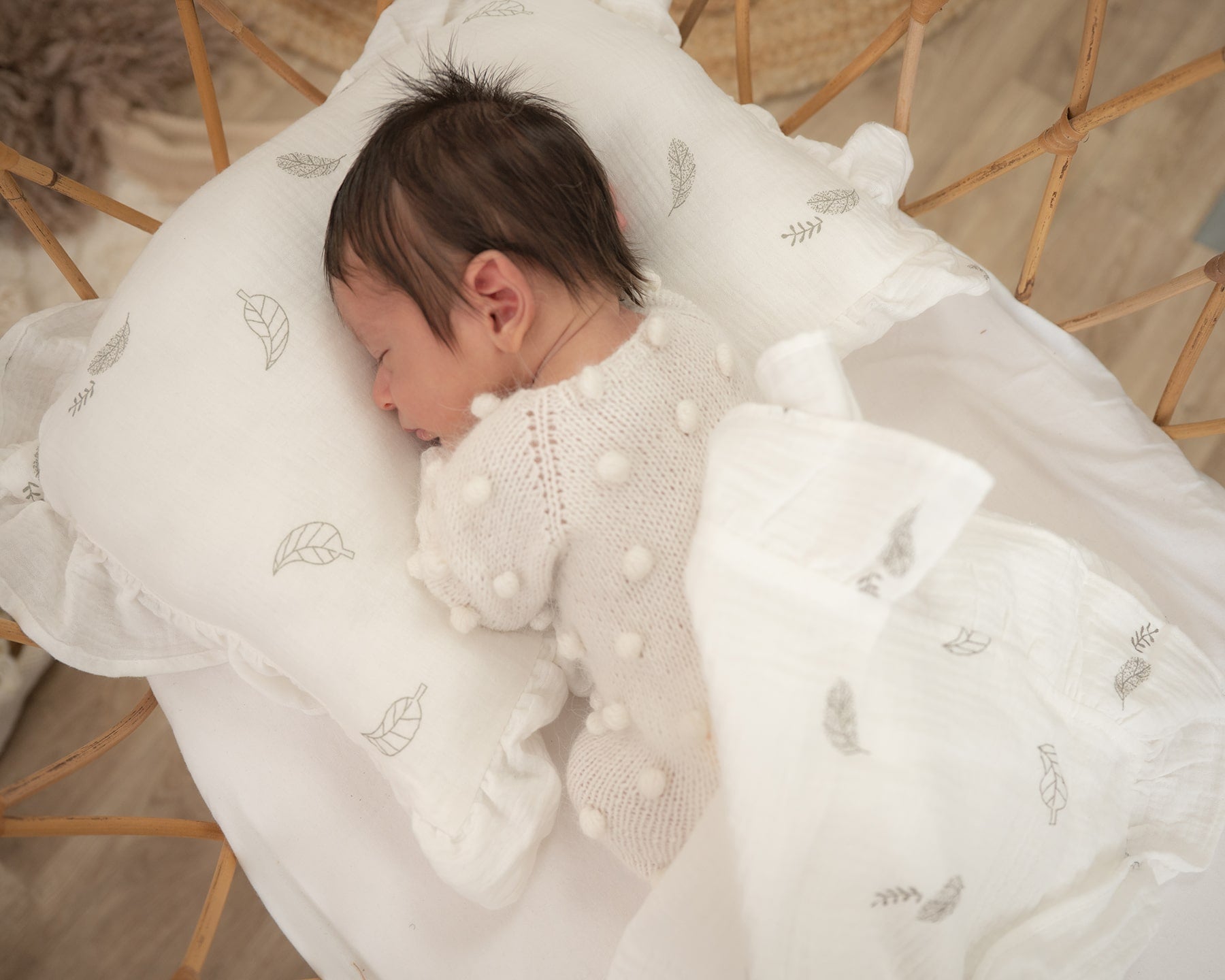 סט חלומי לתינוק – שמיכת טטרה מלמלה וכרית תואמת - צבע לבן שלכת