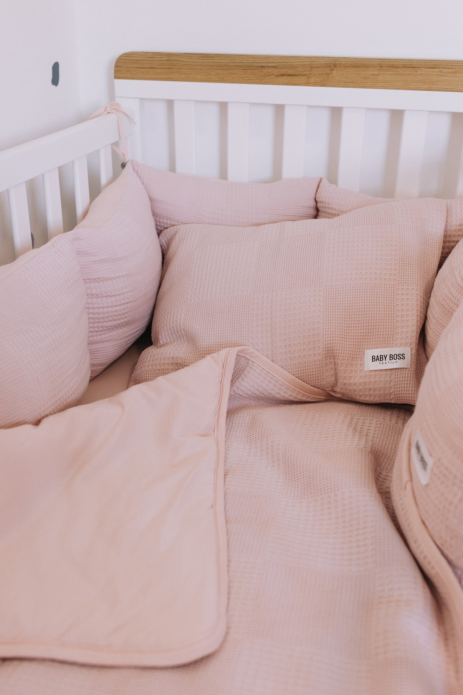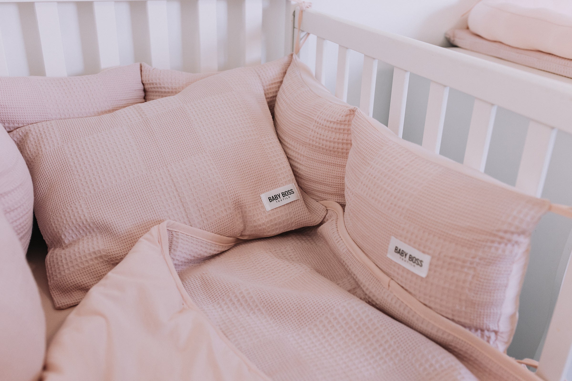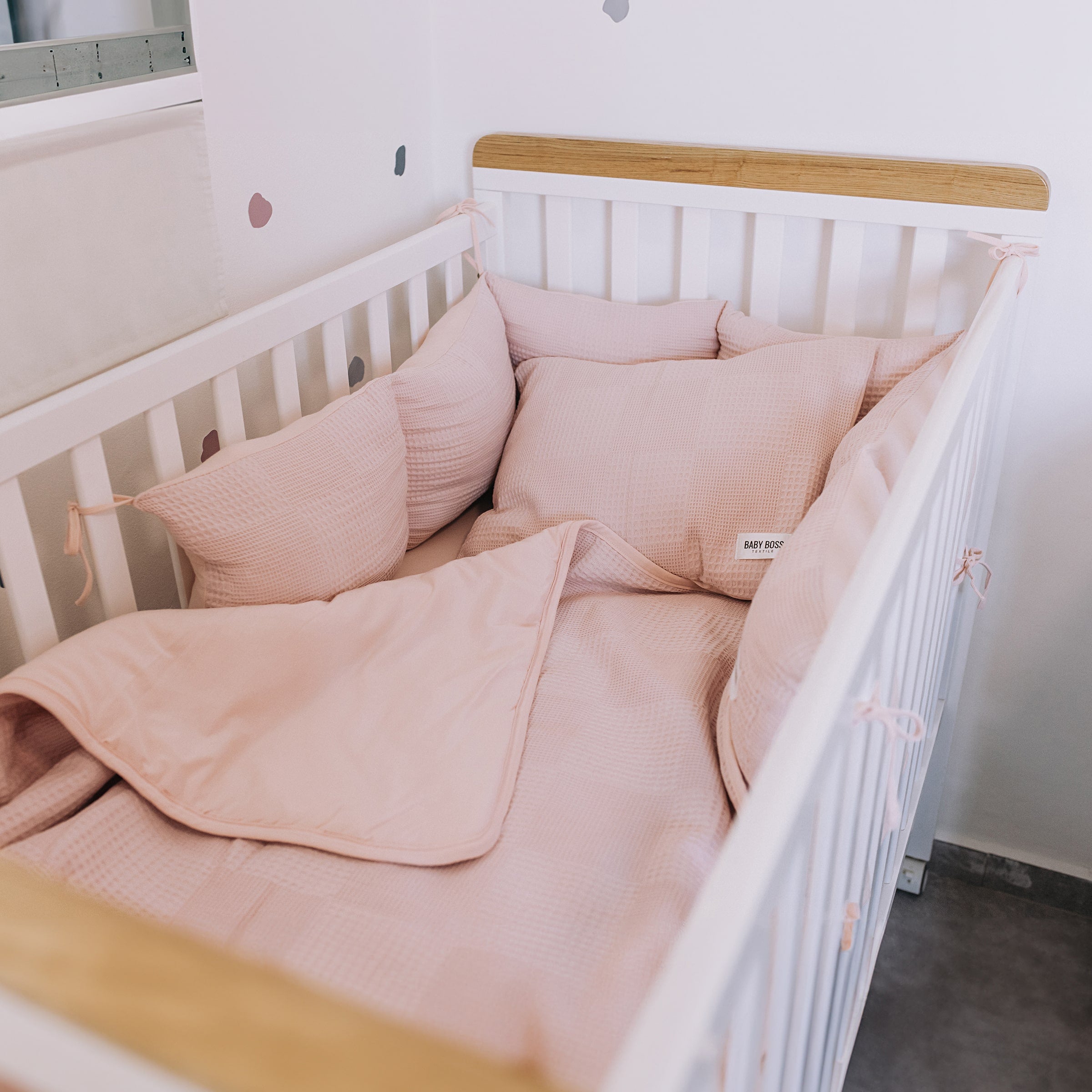 מצעים למיטת תינוק סט בד פיקה ריבועים וג׳רסי - צבע פודרה