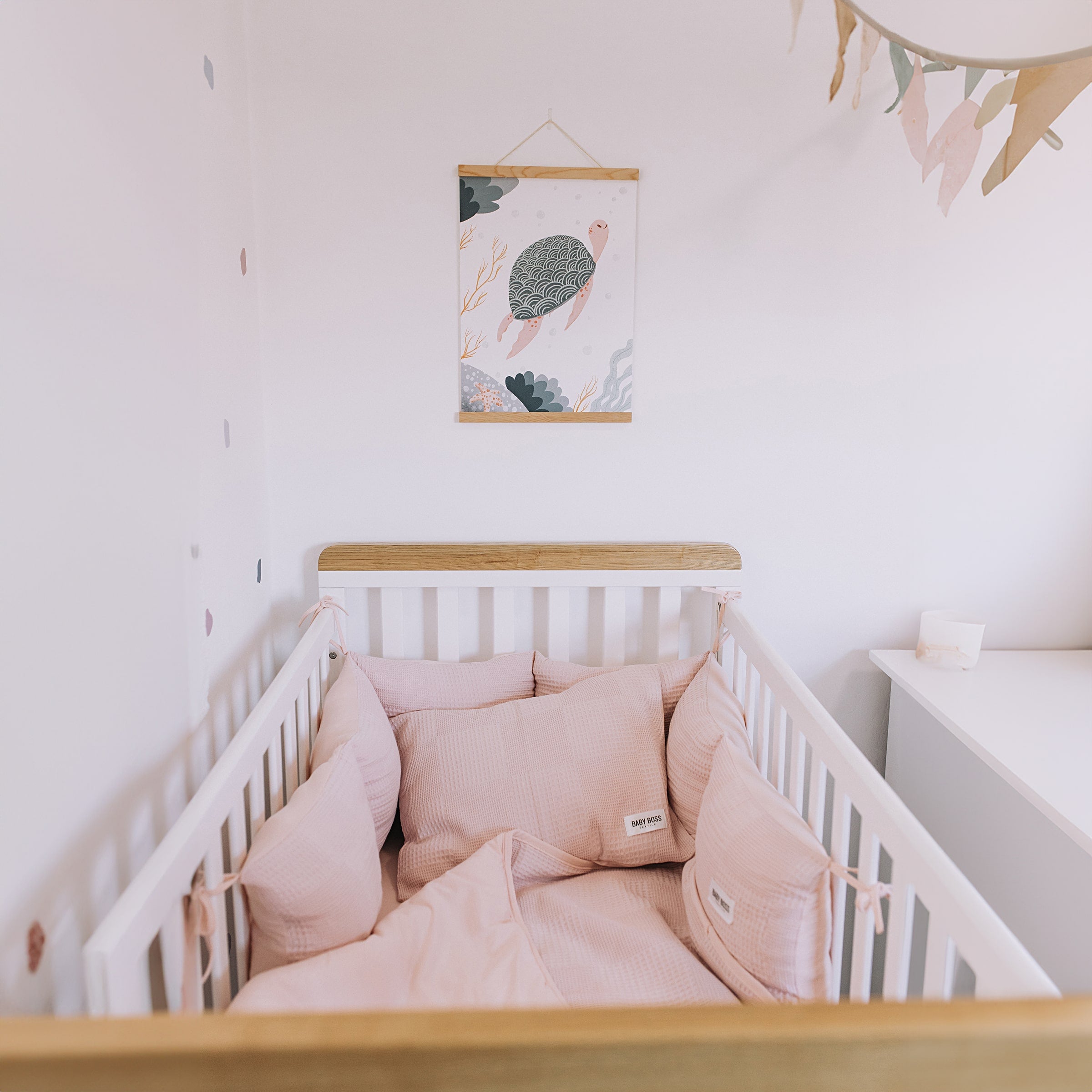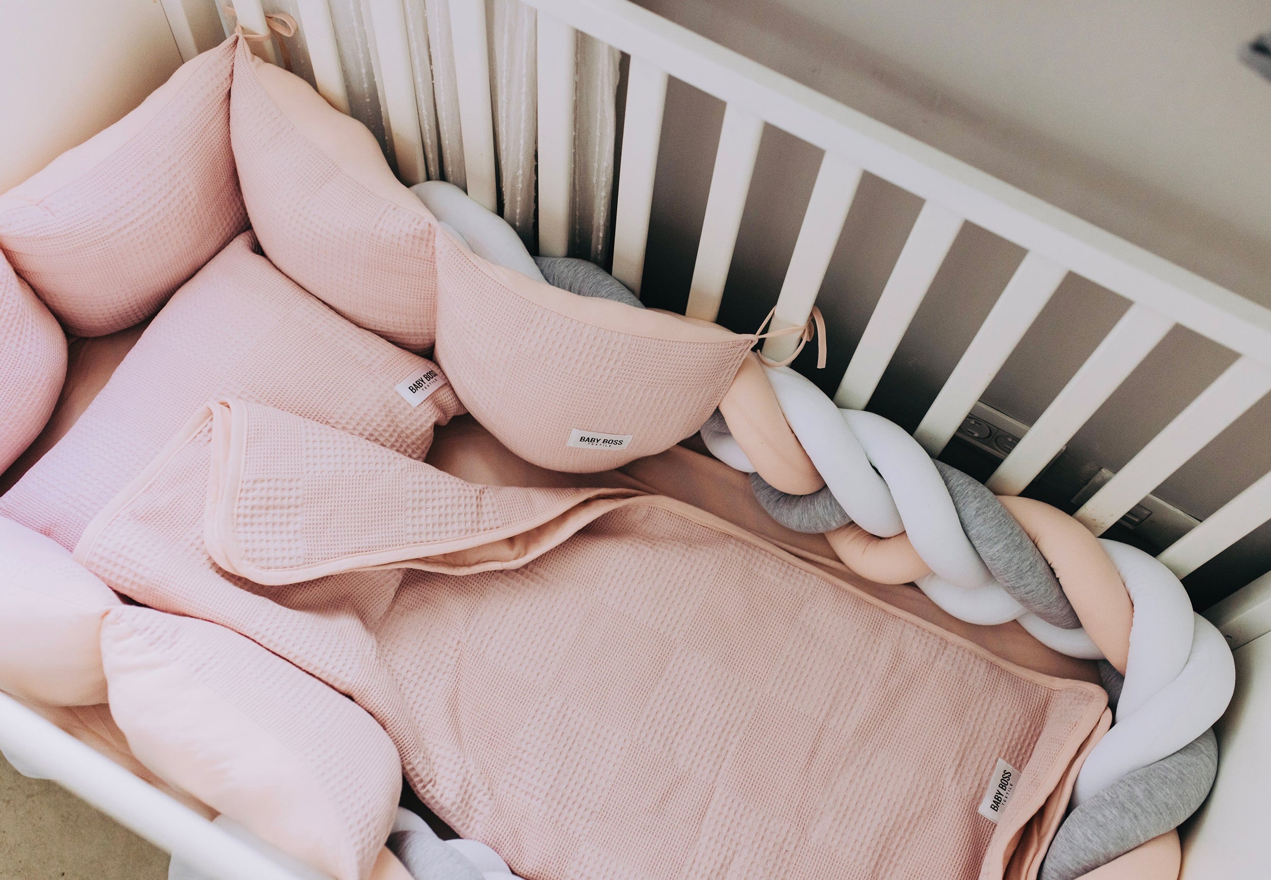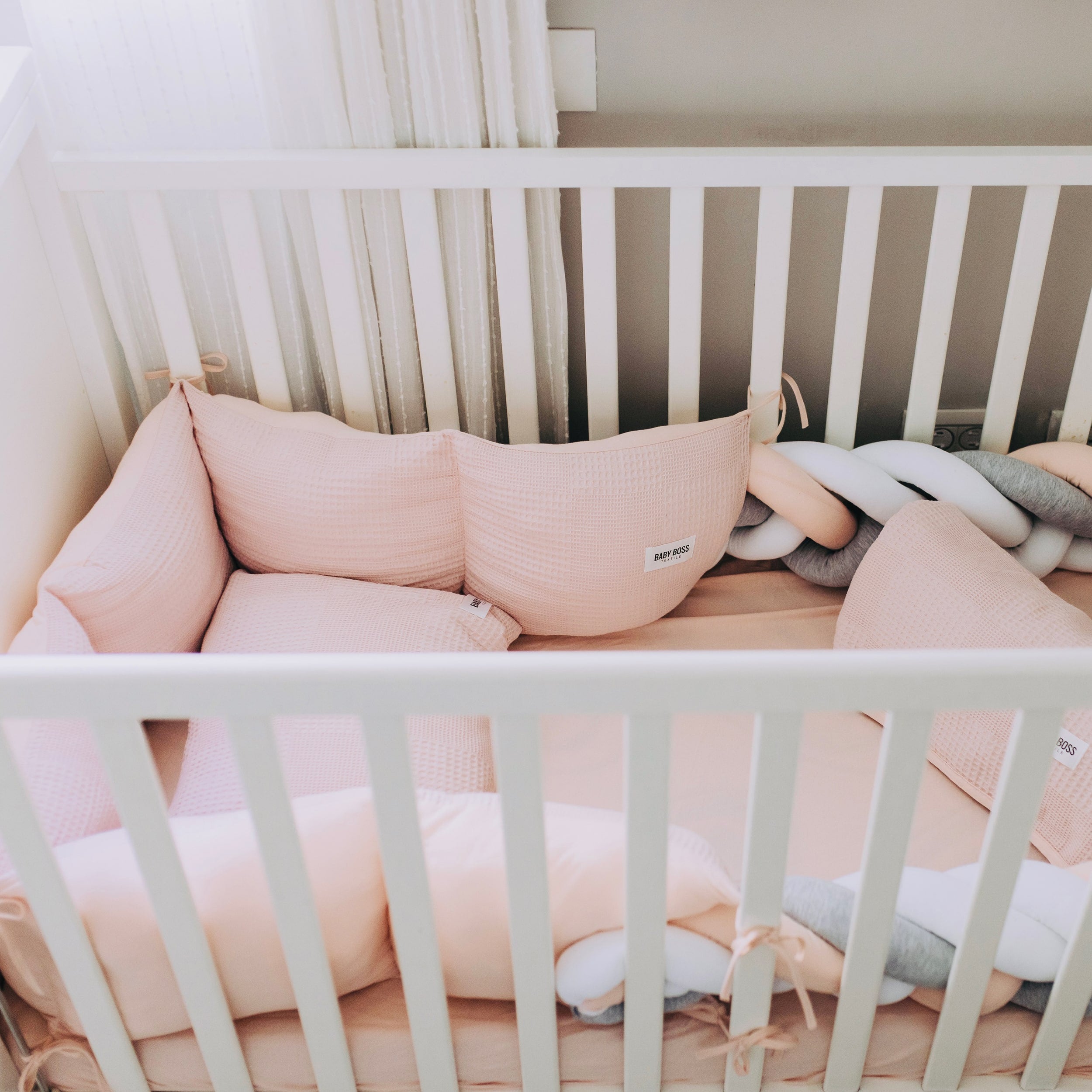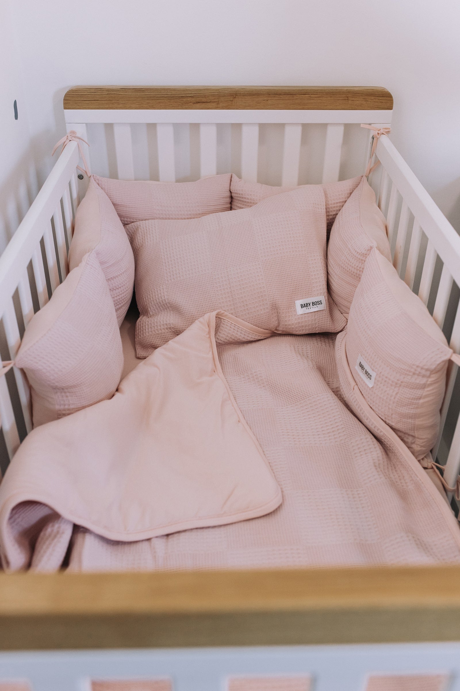 מצעים למיטת תינוק סט בד פיקה ריבועים וג׳רסי - צבע פודרה