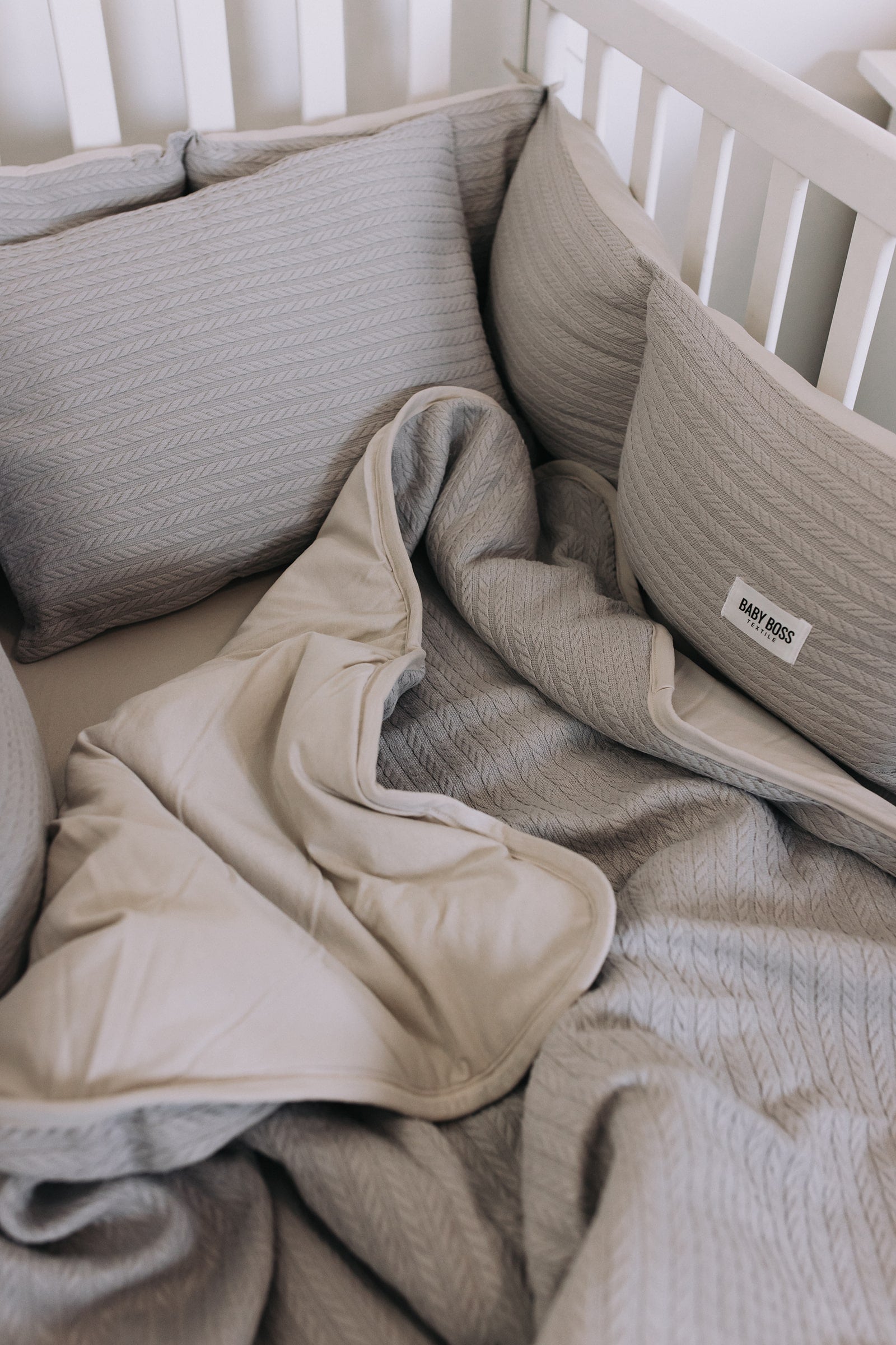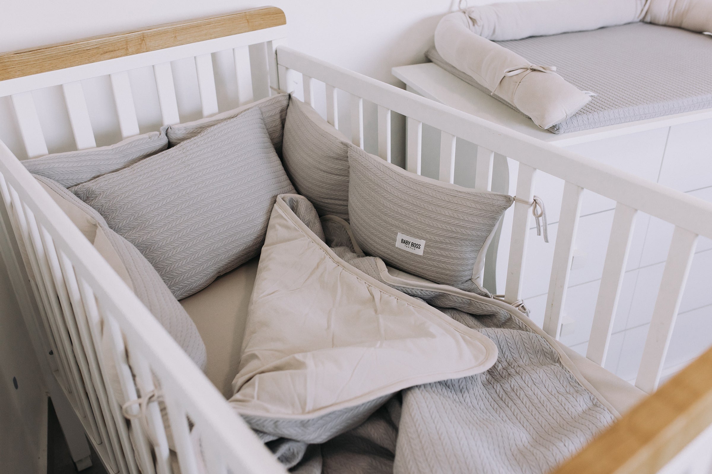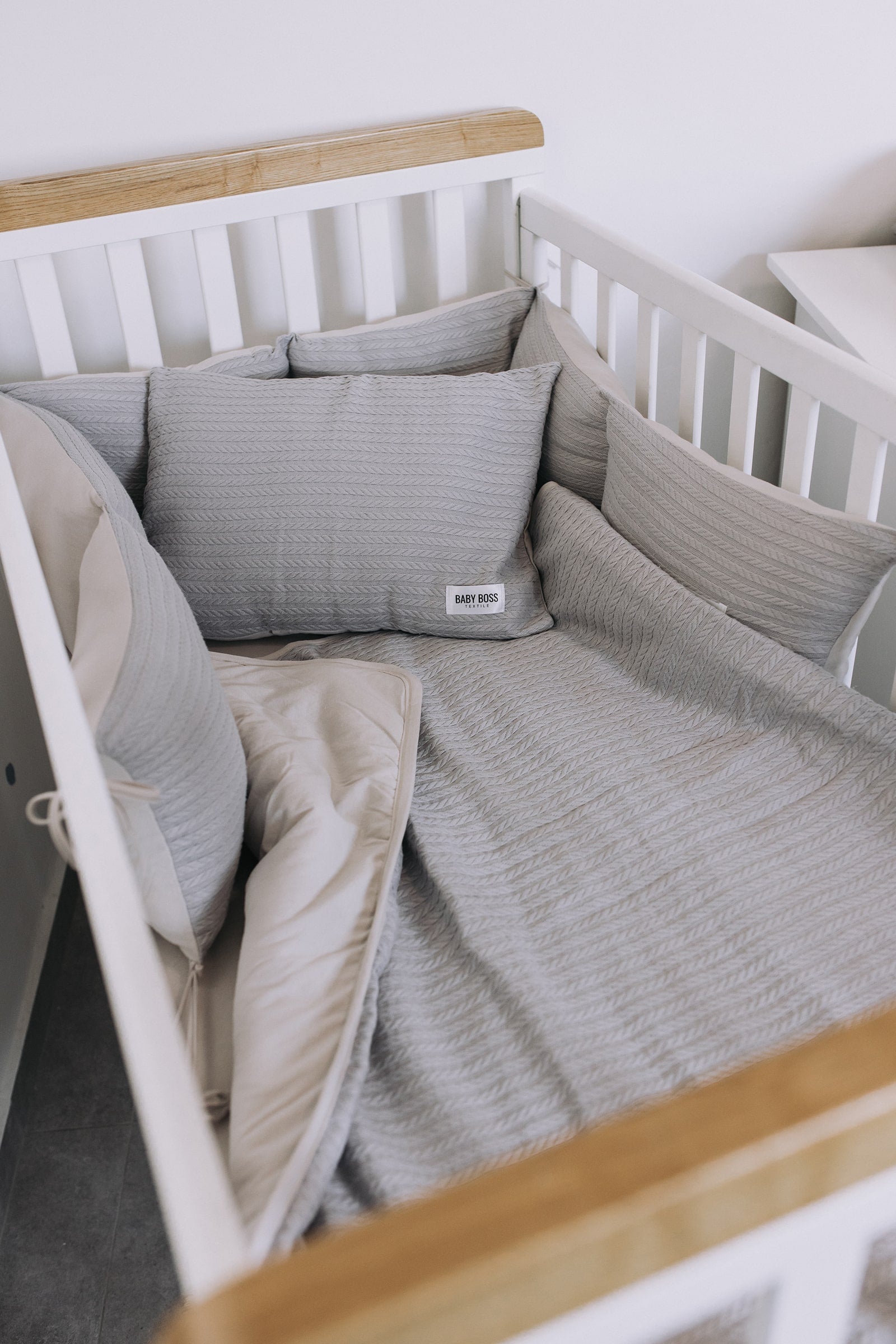 מצעים למיטת תינוק סט בד פיקה צמות - צבע אפור