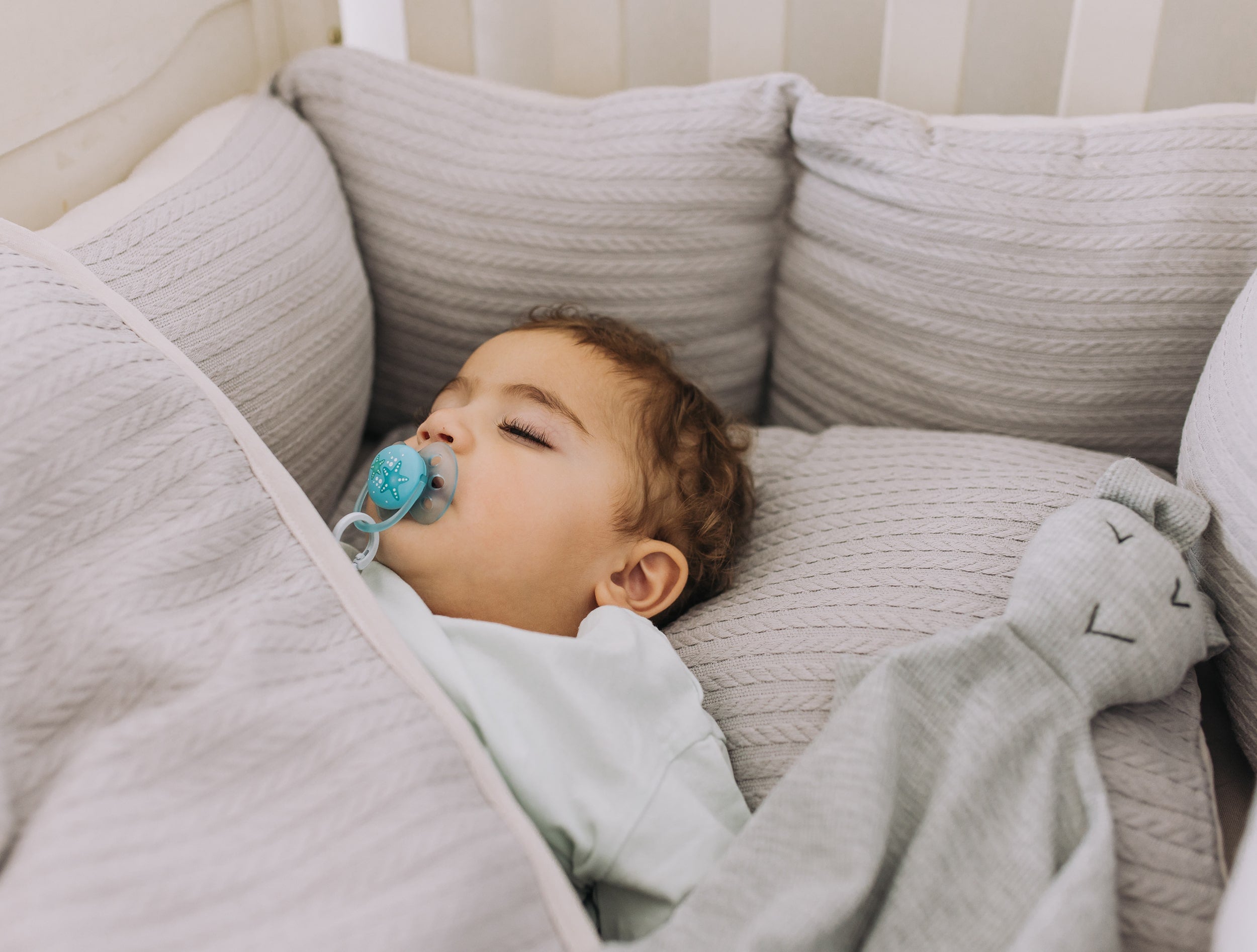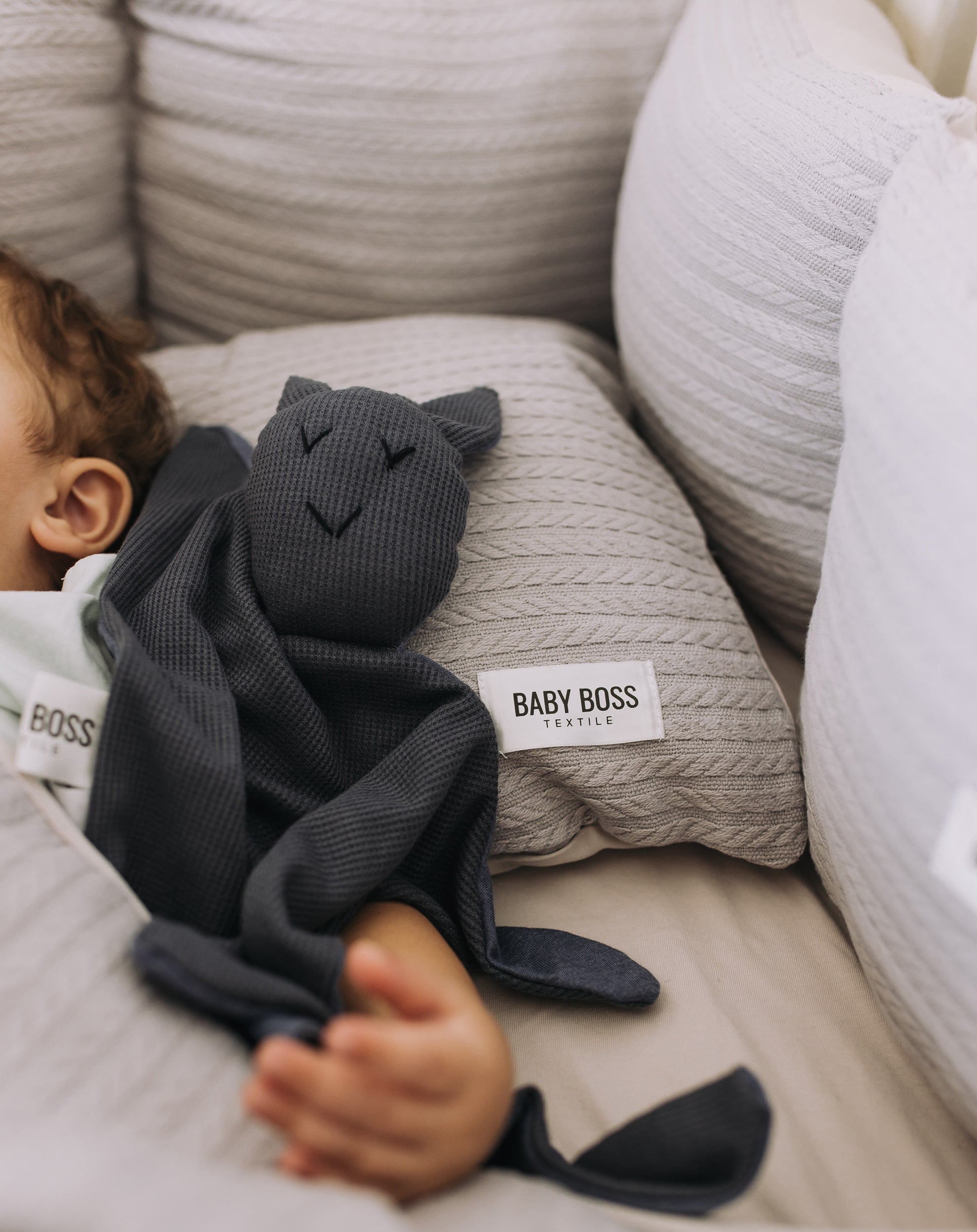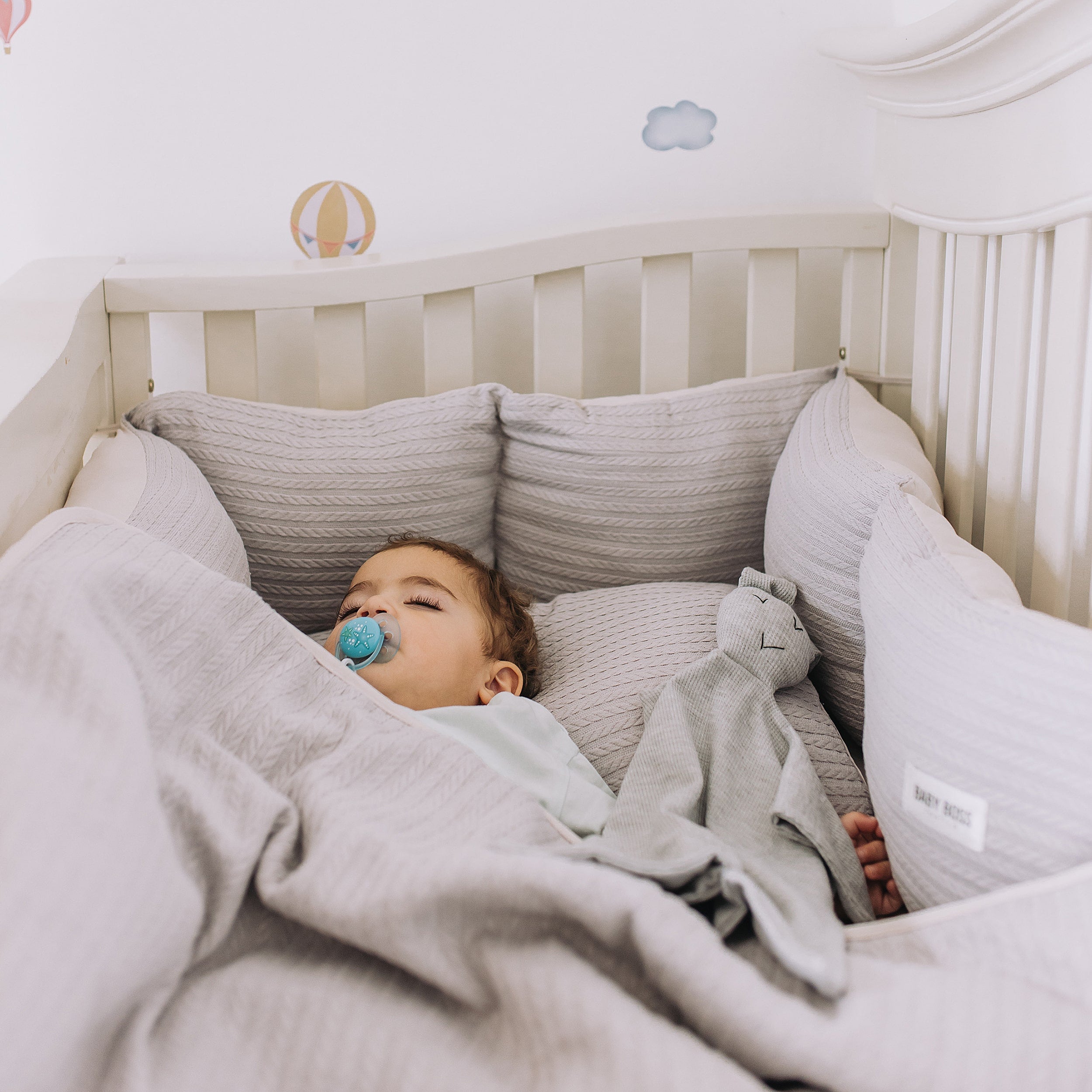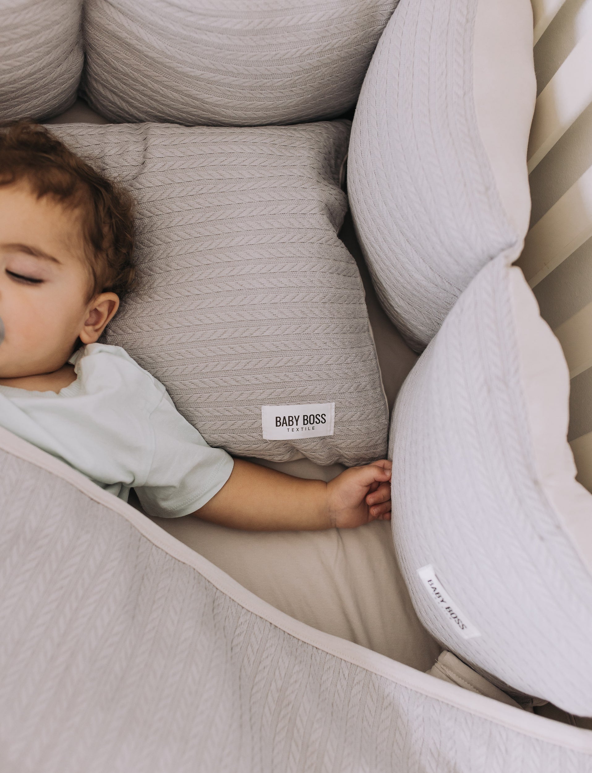 מצעים למיטת תינוק סט בד פיקה צמות - צבע אפור