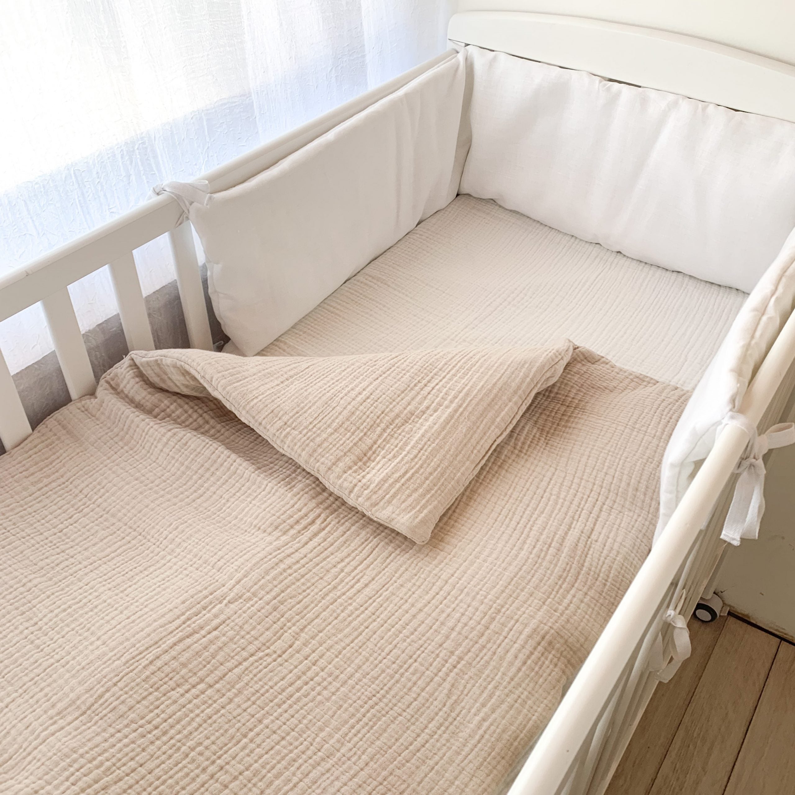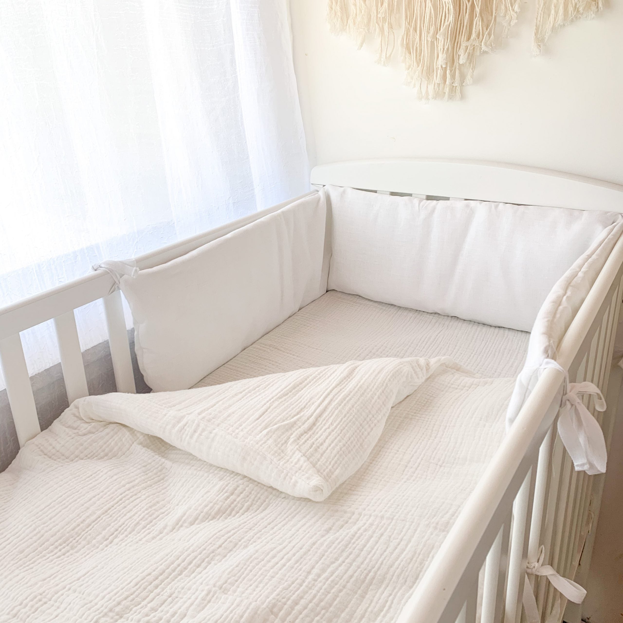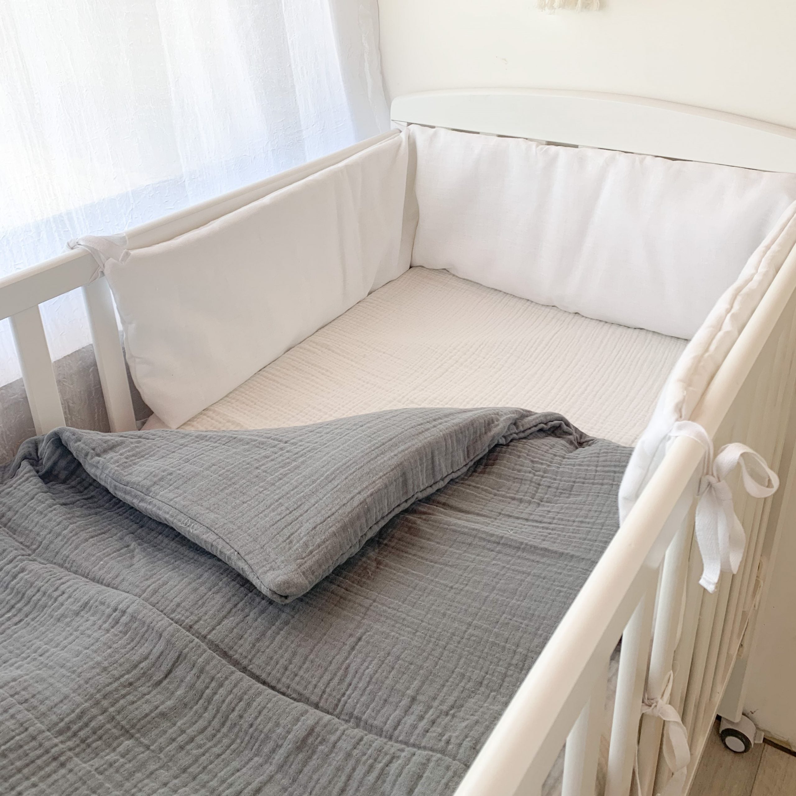 • מגן ראש למיטת תינוק עשוי מפשתן במילוי אקרילן – 188x30 ס"מ