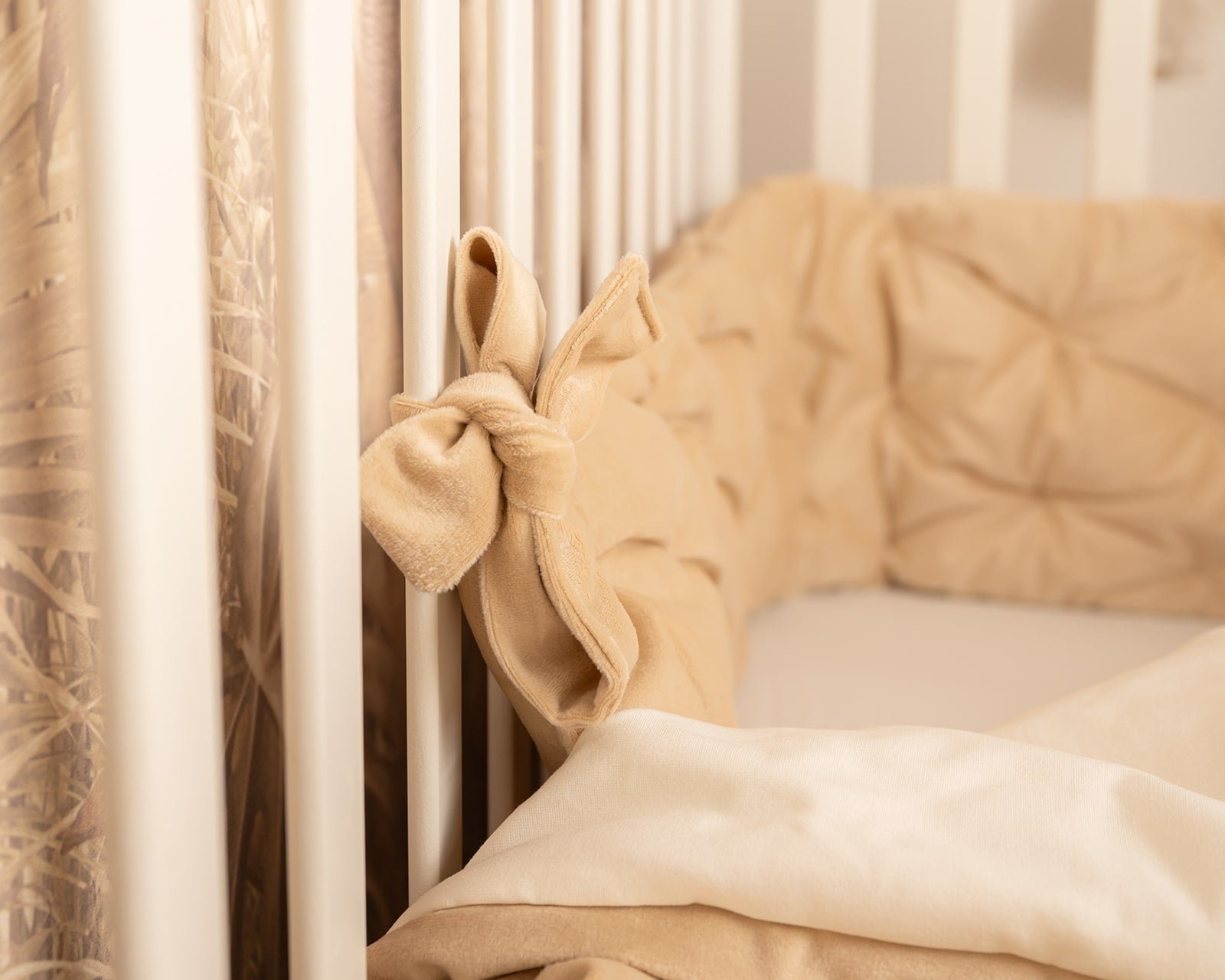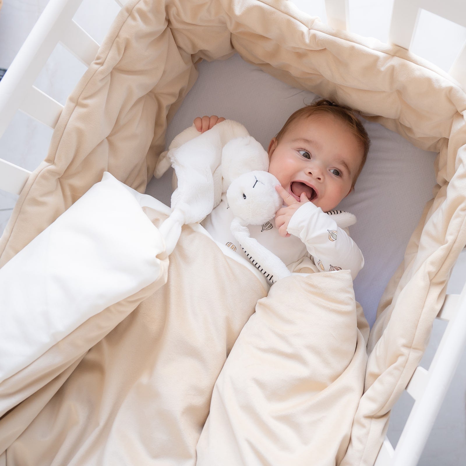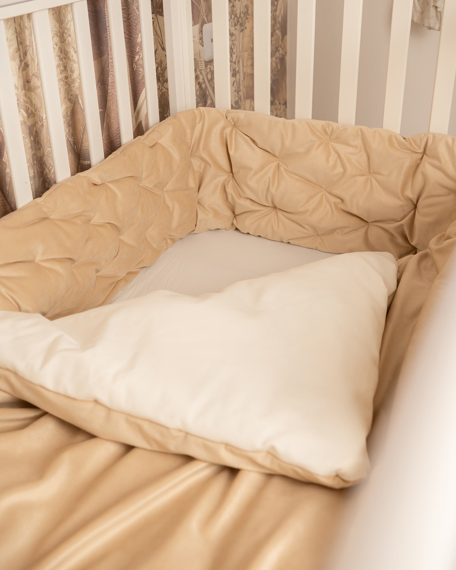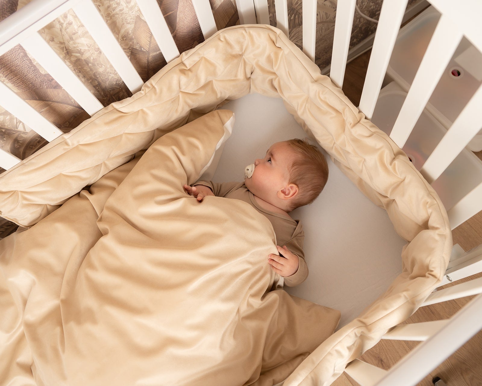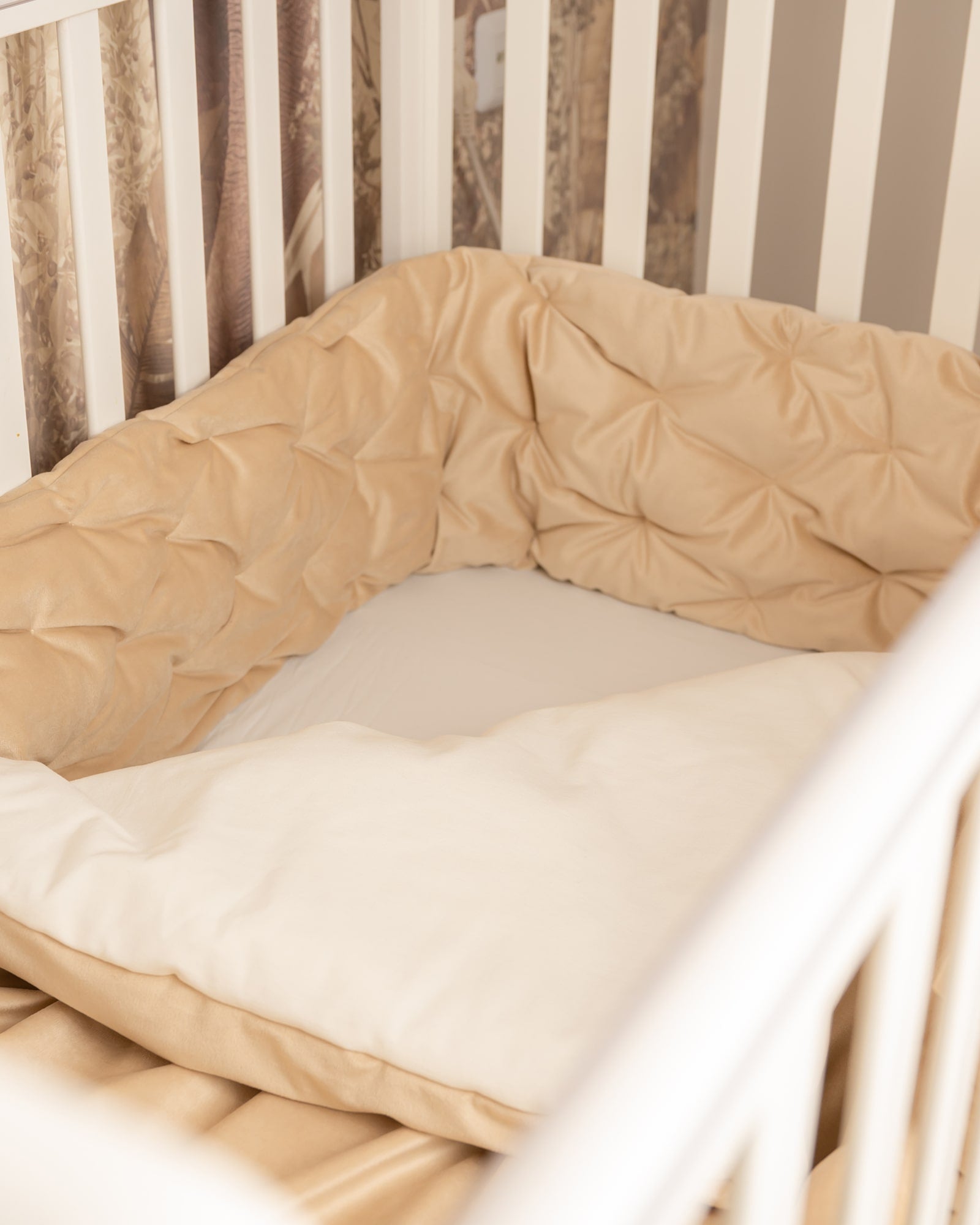 סט יוקרתי למיטת תינוק - בד קטיפה צבע חול
