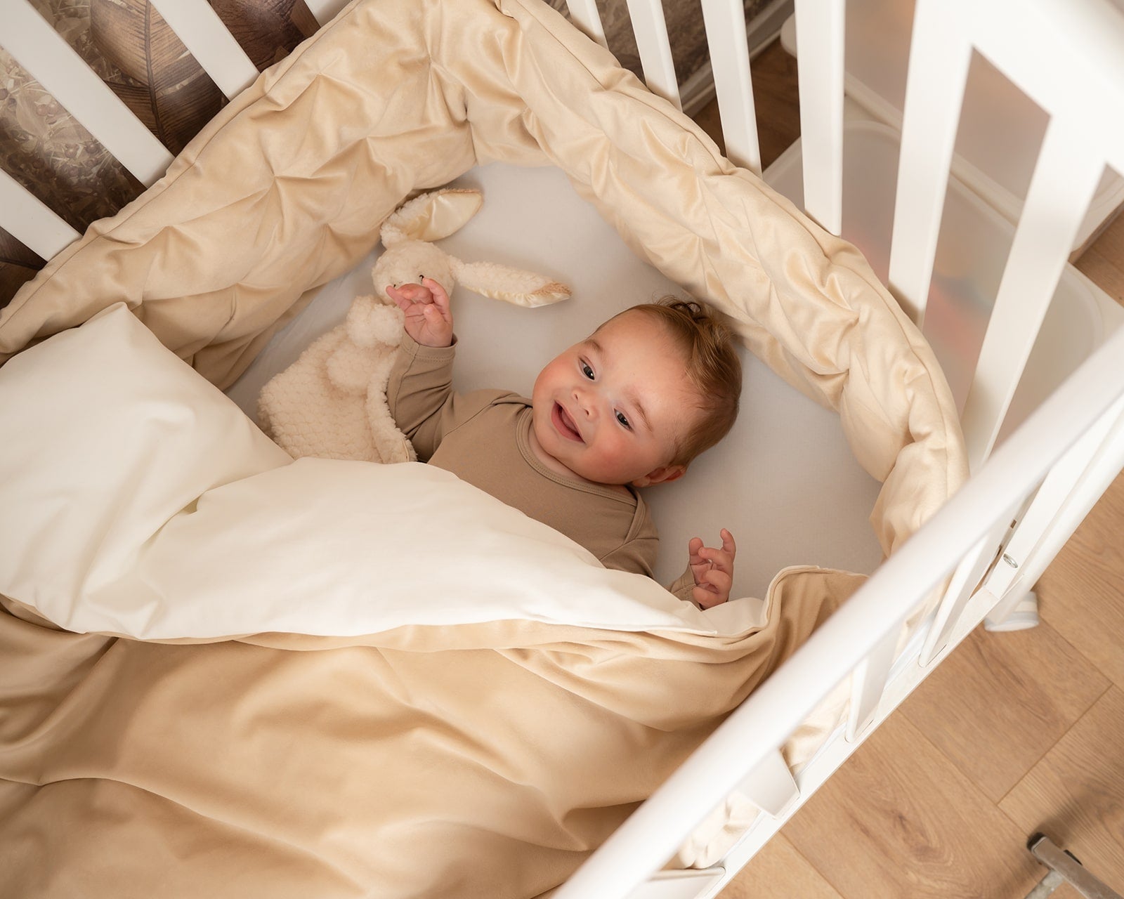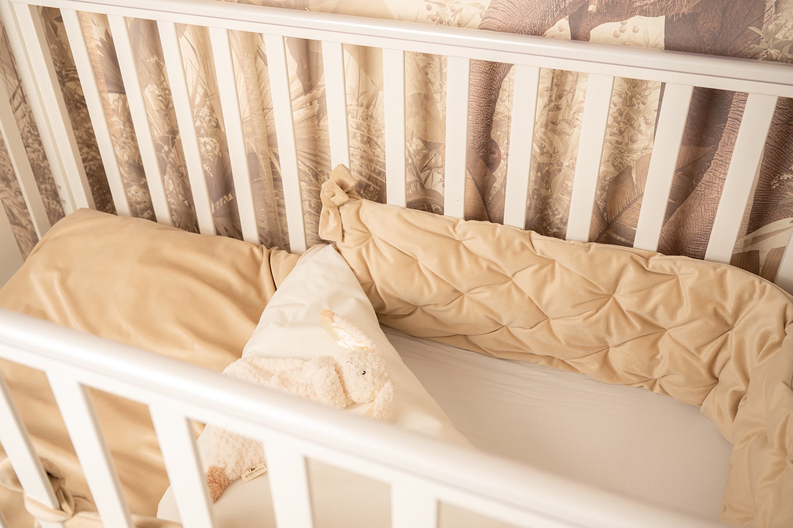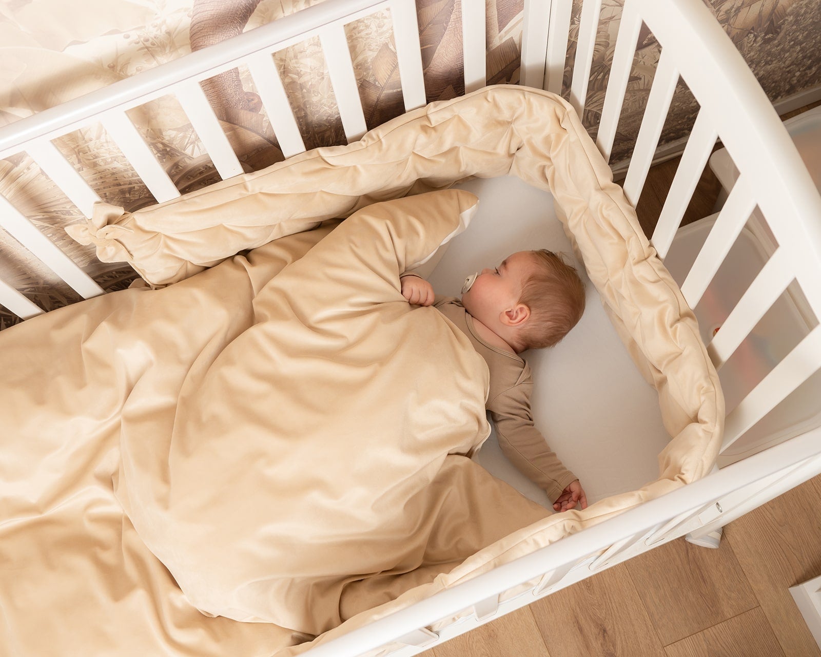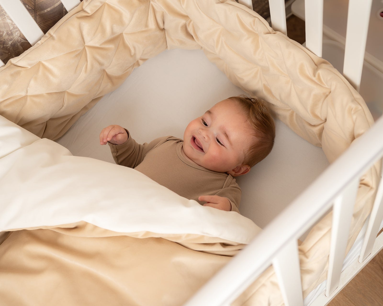 סט יוקרתי למיטת תינוק - בד קטיפה צבע חול