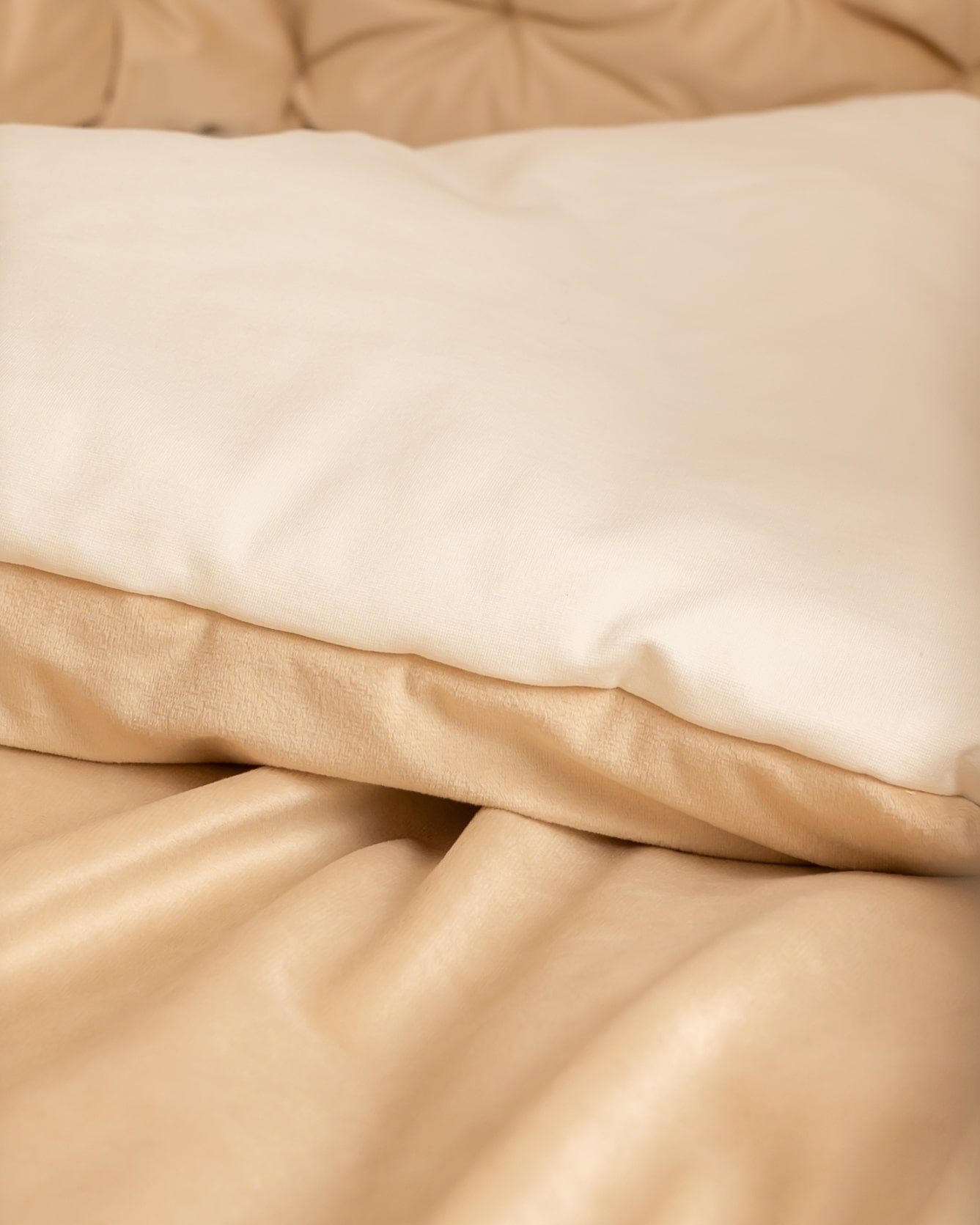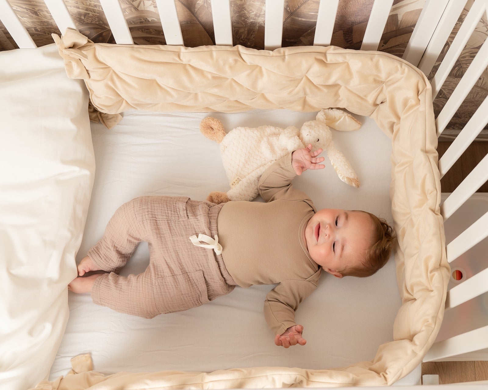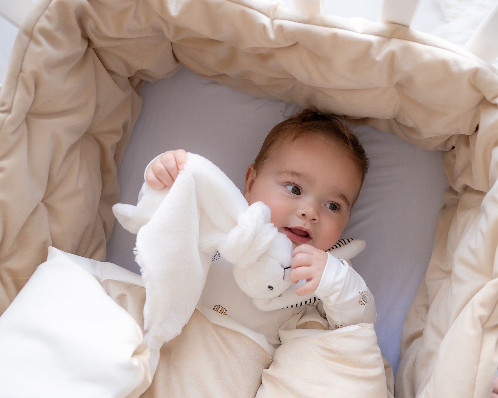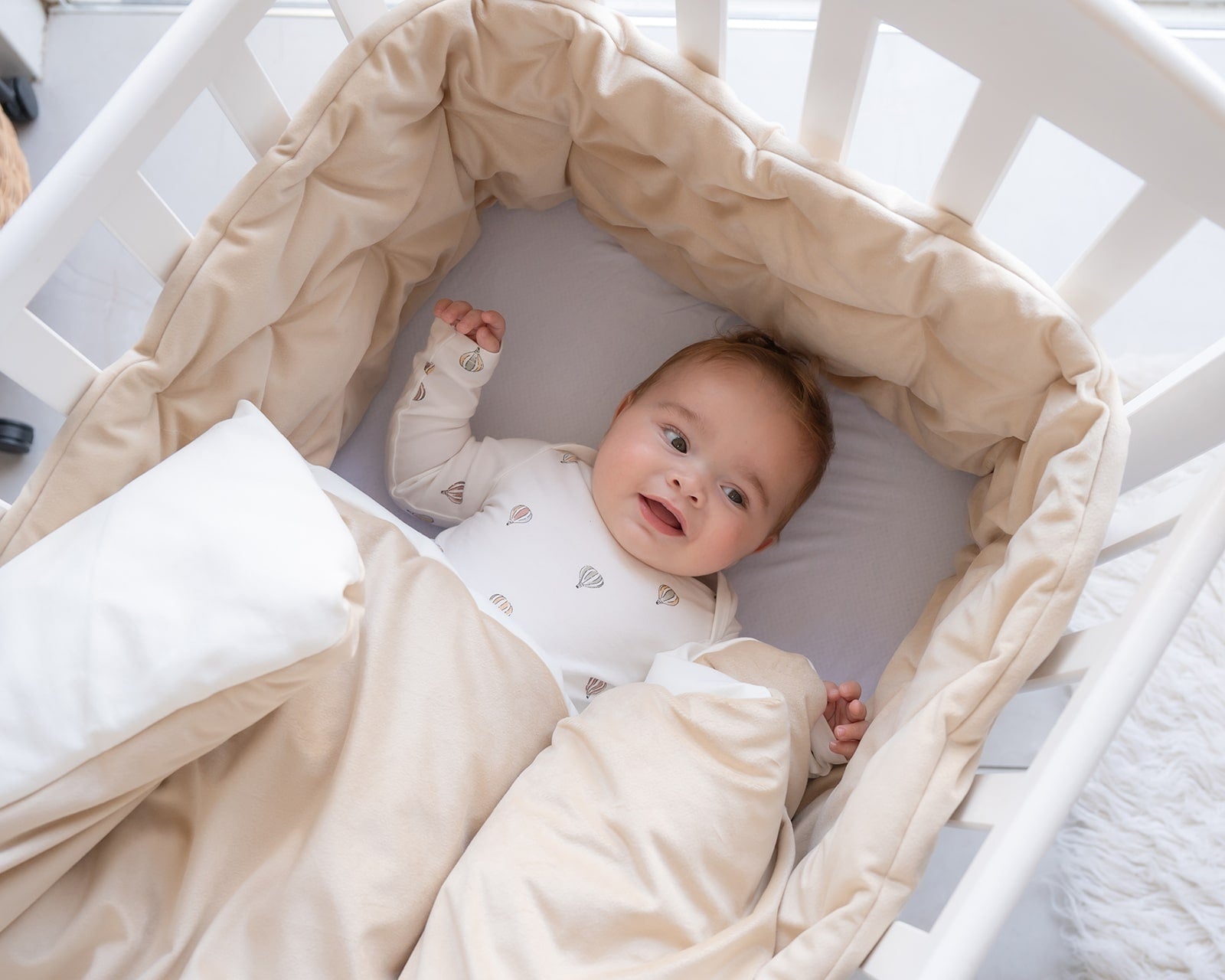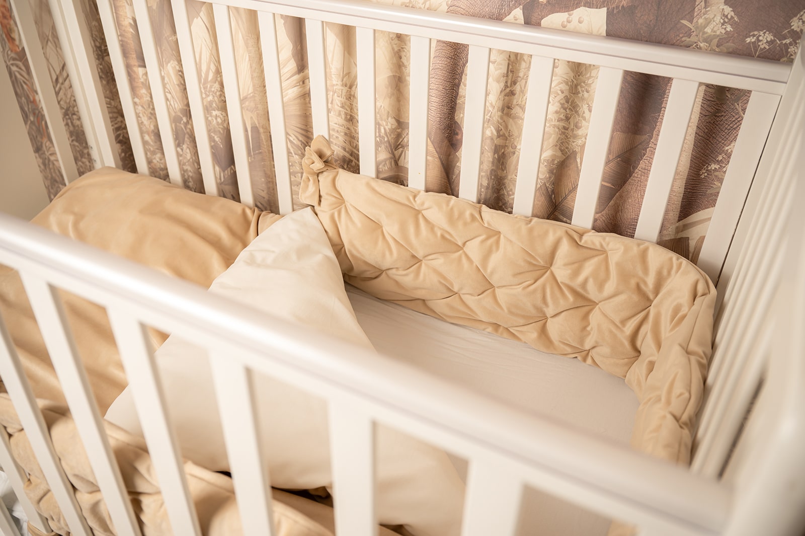 סט יוקרתי למיטת תינוק - בד קטיפה צבע חול