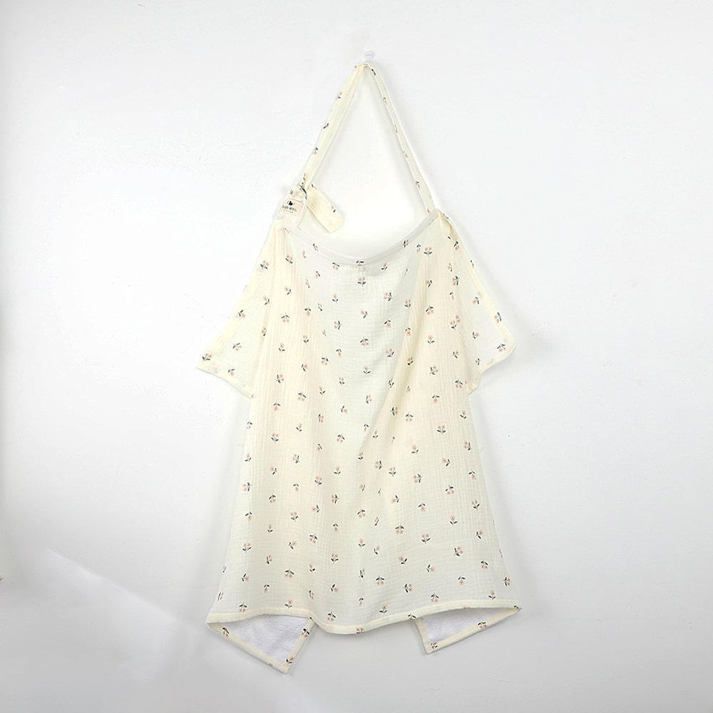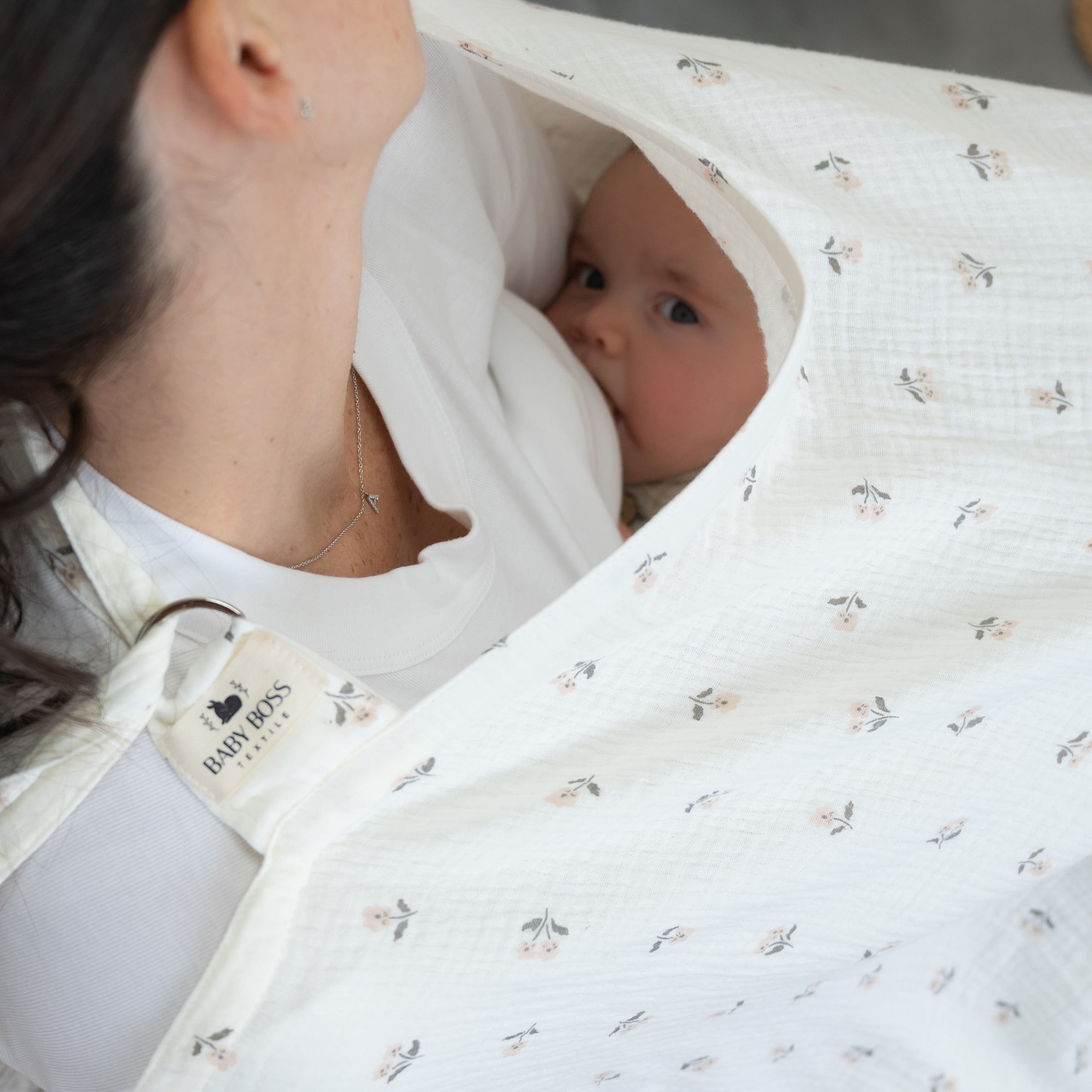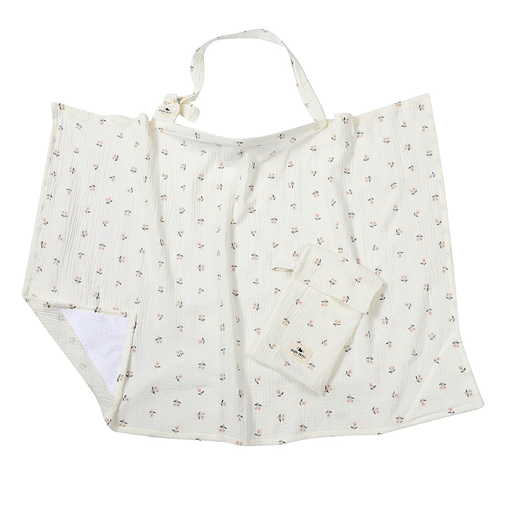 סינר הנקה כותנה אורגנית - שמנת פרחים