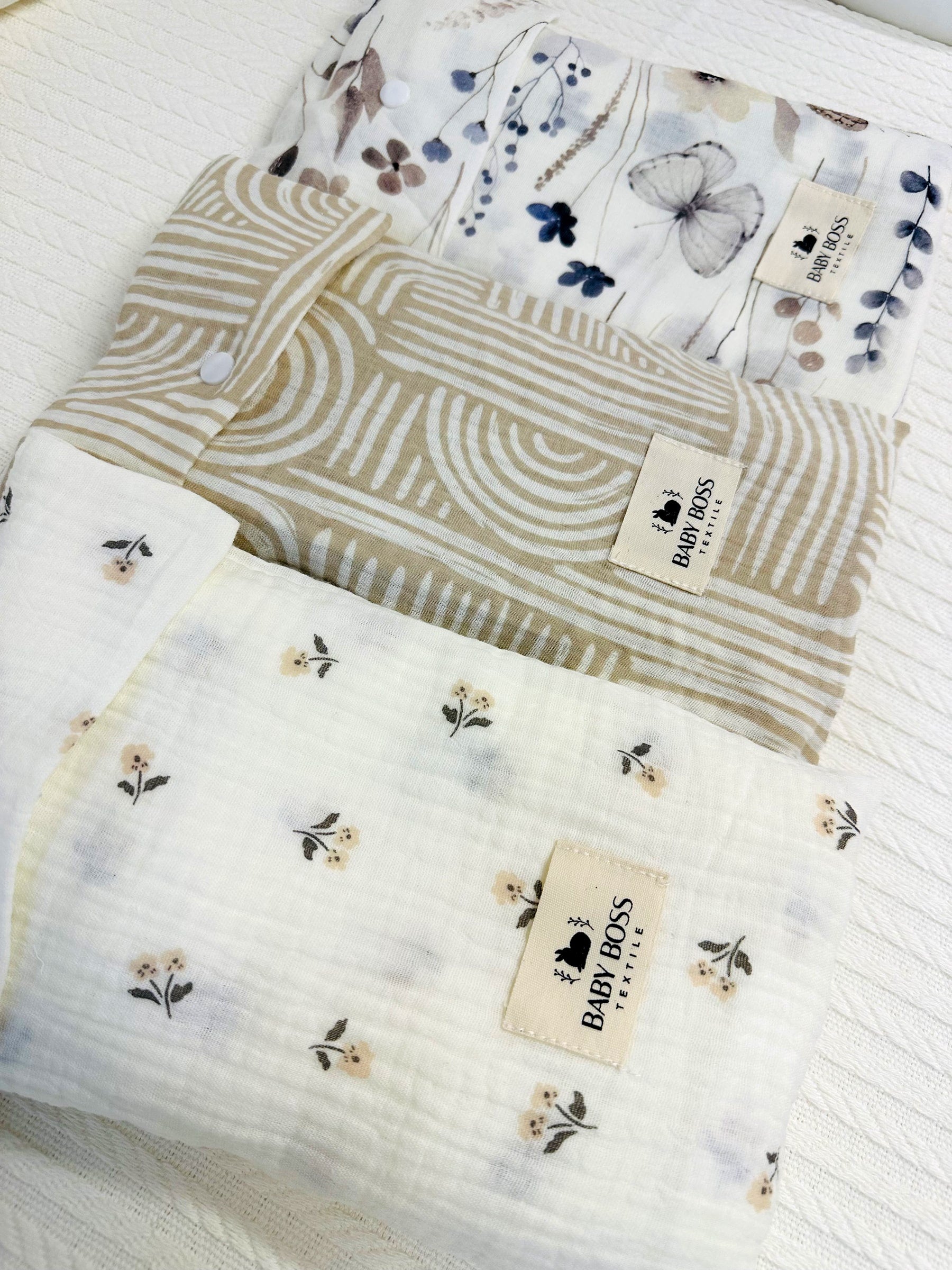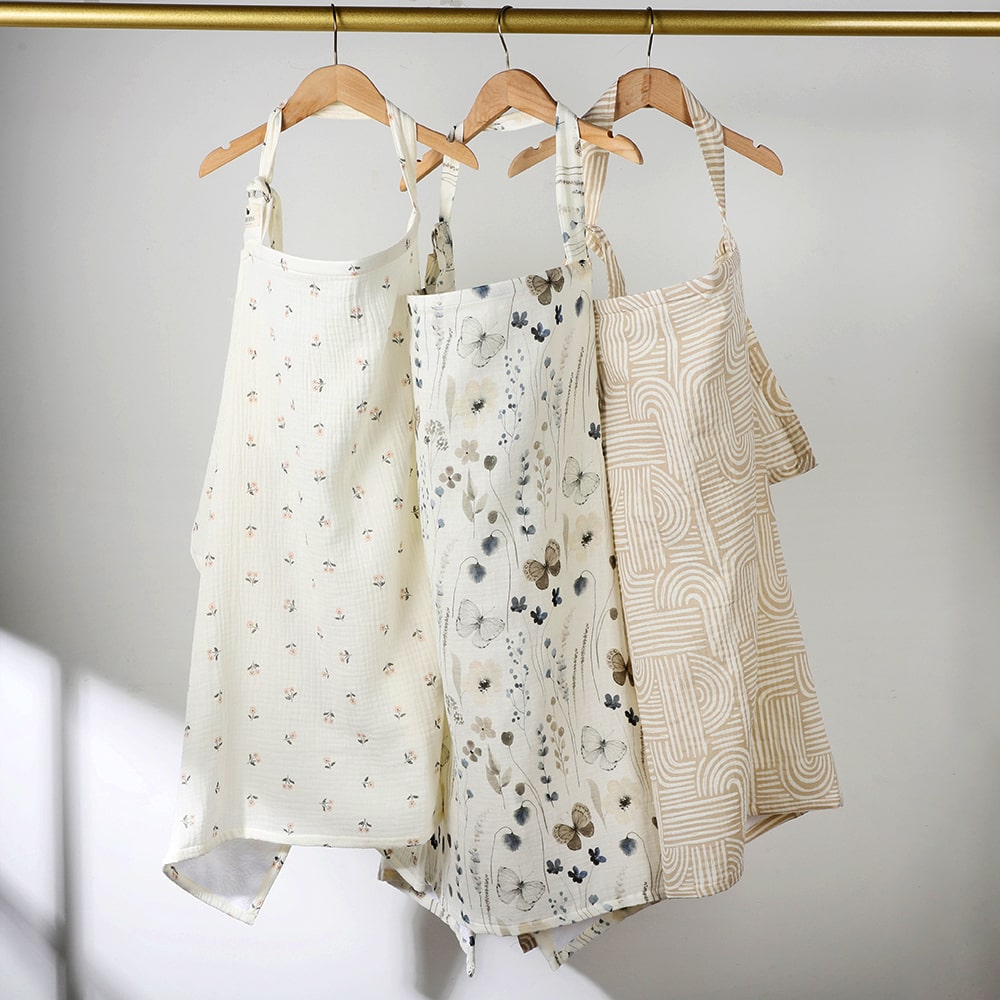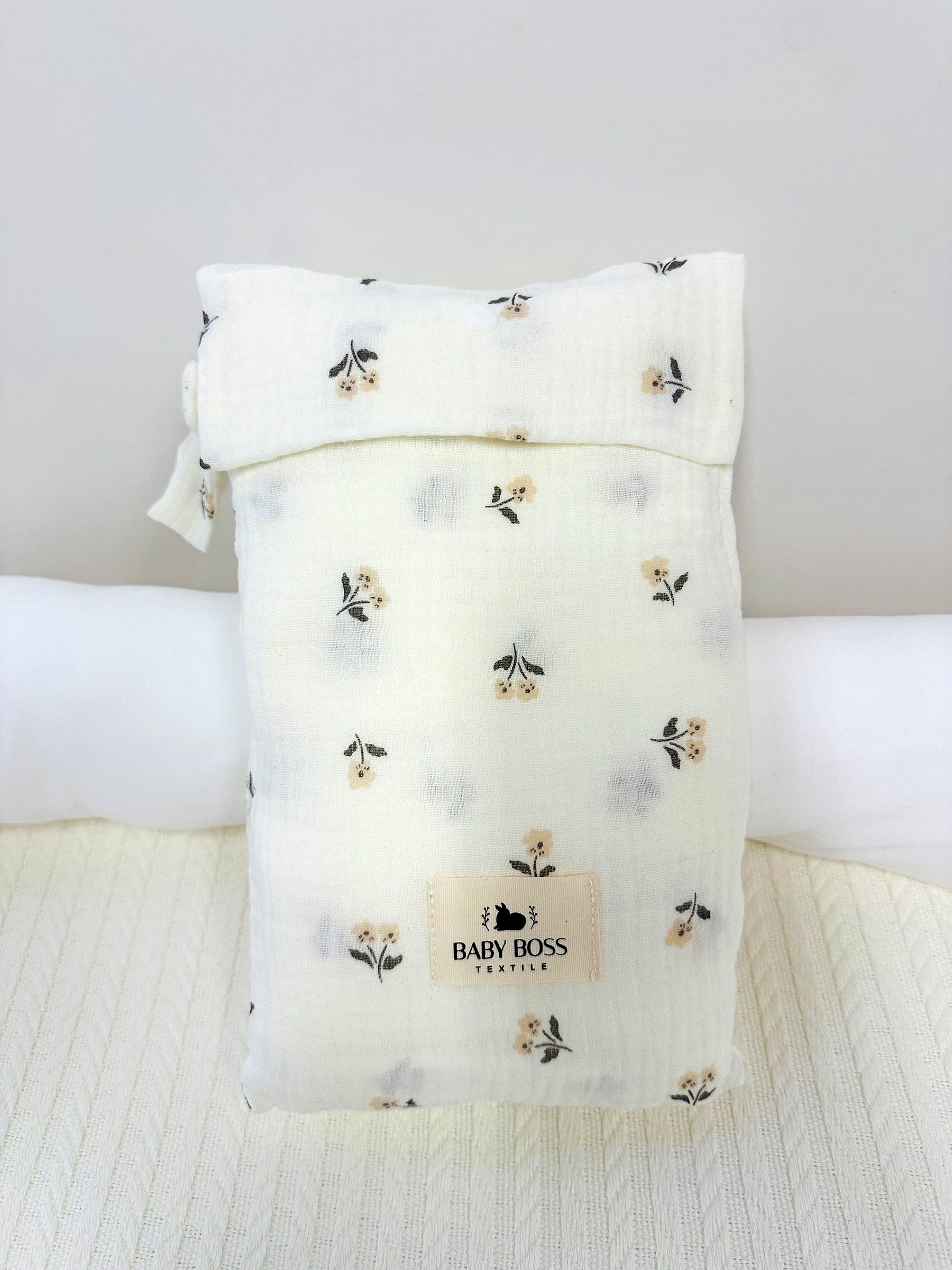 סינר הנקה כותנה אורגנית - שמנת פרחים